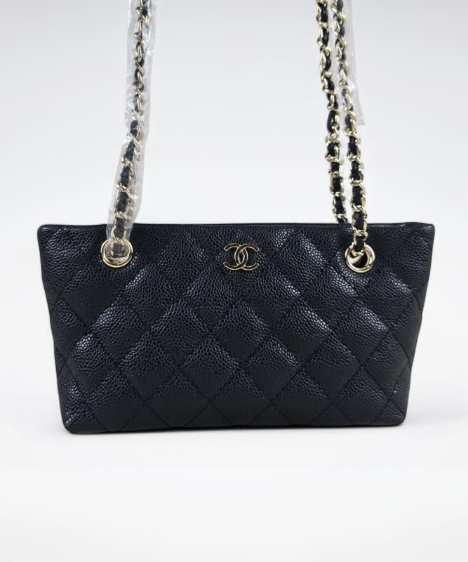 [REP 1:1] Chain Tote Shoulder Bag Black/White For Women 13in / 33cm A50995