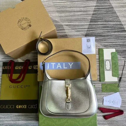 1:1 Replica Gucci Jackie 1961 Small Shoulder Bag Silver For Women, Women’s Bags 10.8in/28cm GG