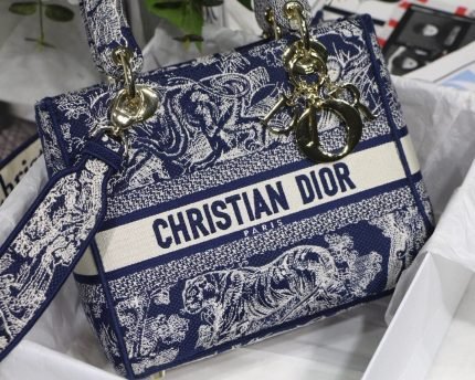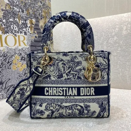 1:1 Replica Christian Dior Medium Dior Lady D-Lite Bag Blue and Black Mizza Embroidery, Blue and Black, For Women Women’s Handbags, Crossbody Bags, 24cm CD M0565ORHM_M962