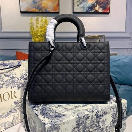 1:1 Replica Christian Dior Large Lady Dior Bag Black For Women 12.5in/32cm CD M0566SLOI_M989
