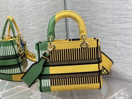 1:1 Replica Christian Dior Medium Lady D-Lite Bag D-Flower Pop Embroidery, Bright Yellow/Green, For Women Women’s Handbags, 24cm CD M0565OROO_M886