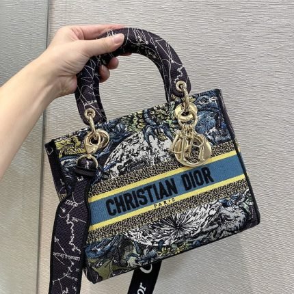 1:1 Replica Christian Dior Medium Lady D-Lite Bag Dior Constellation Embroidery, Blue, For Women Women’s Handbags, Crossbody Bags, 24cm CD M0565ORHP_M928