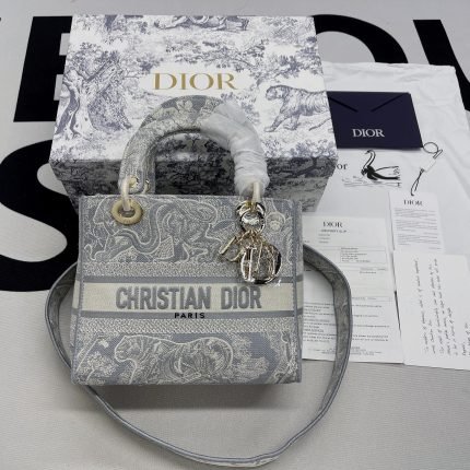 1:1 Replica Christian Dior Medium Lady D-Lite Bag Grey, For Women, Women’s Handbags 24cm/9.5in CD