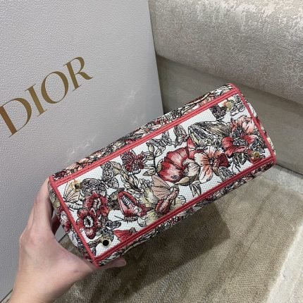 1:1 Replica Christian Dior Medium Lady D-Lite Bag Multicolor Butterfly Embroidery, Red/Latte, For Women Women’s Handbags, 24cm CD M0565ORHQ_M884