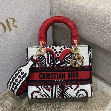 1:1 Replica Christian Dior Medium Lady D-Lite Bag Multicolor Cupidon Embroidery, Red/Latte, For Women Women’s Handbags, 24cm CD M0565OTQG_M941