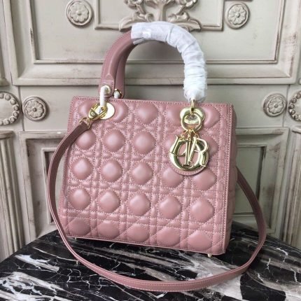 1:1 Replica Christian Dior Medium Lady Dior Bag Gold Toned Hardware Dusty Pink For Women 24cm/9in CD
