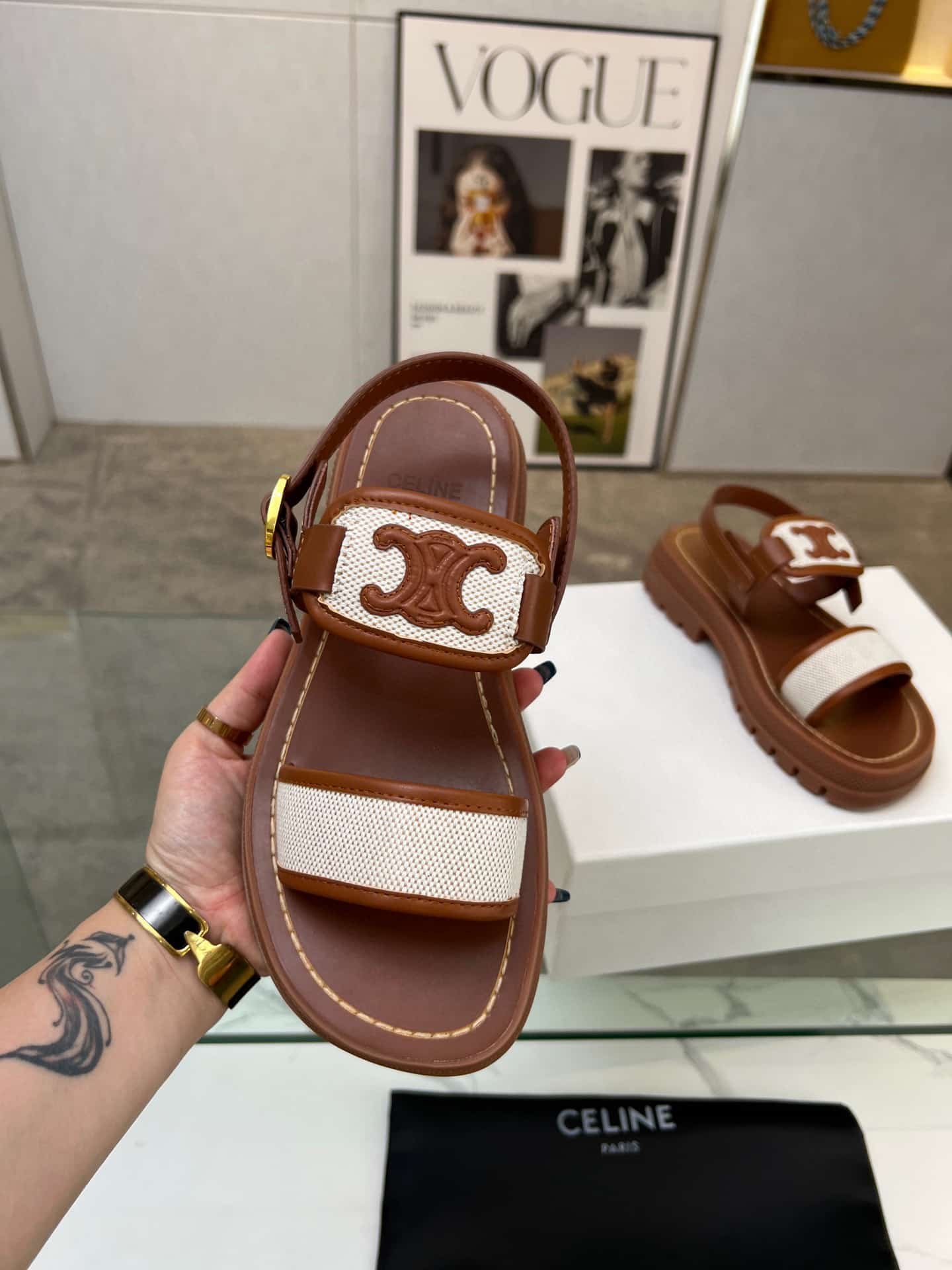 Celine Clea Triomphe Sandal In Calfskin Vegetal Tanning Beige 353872270C04Ub