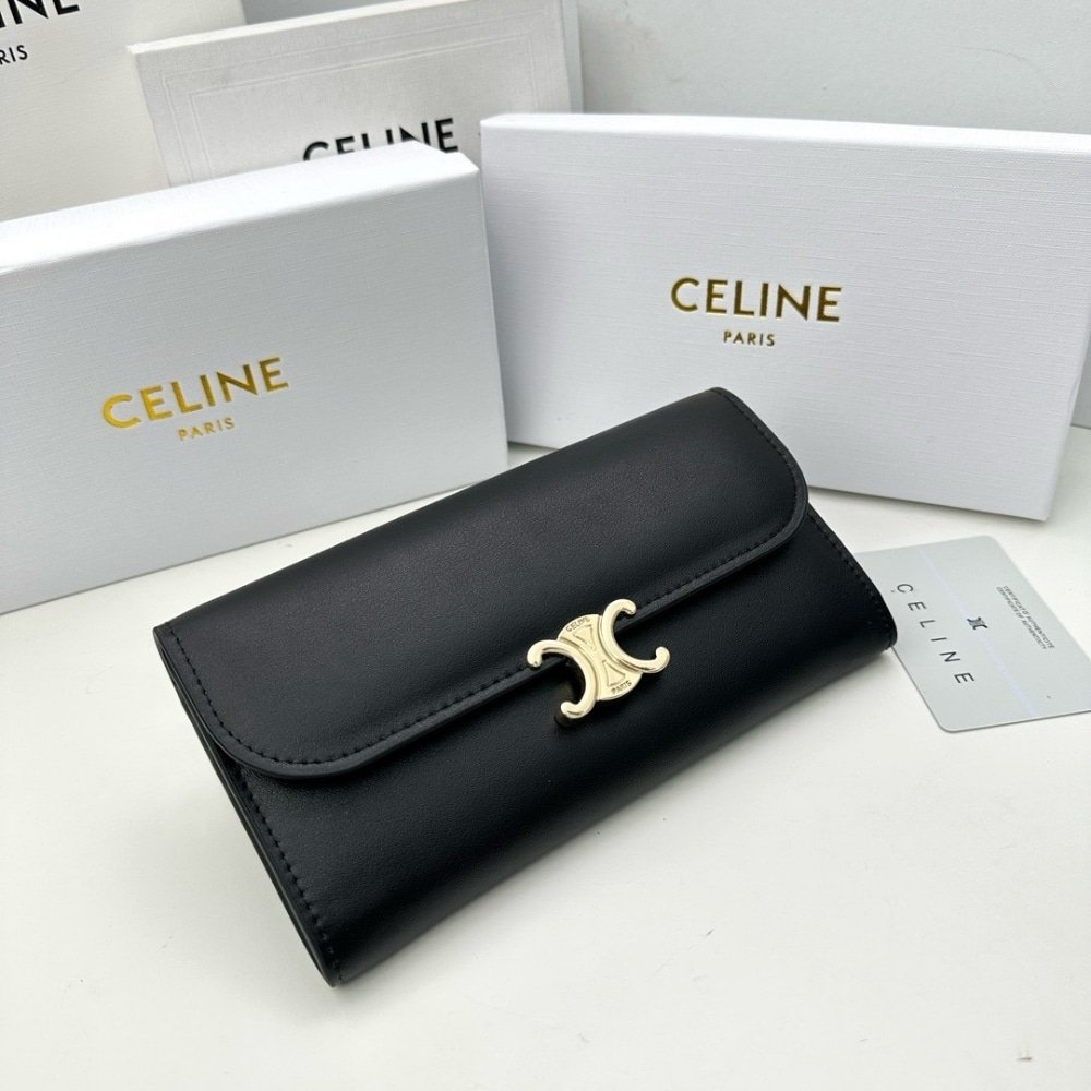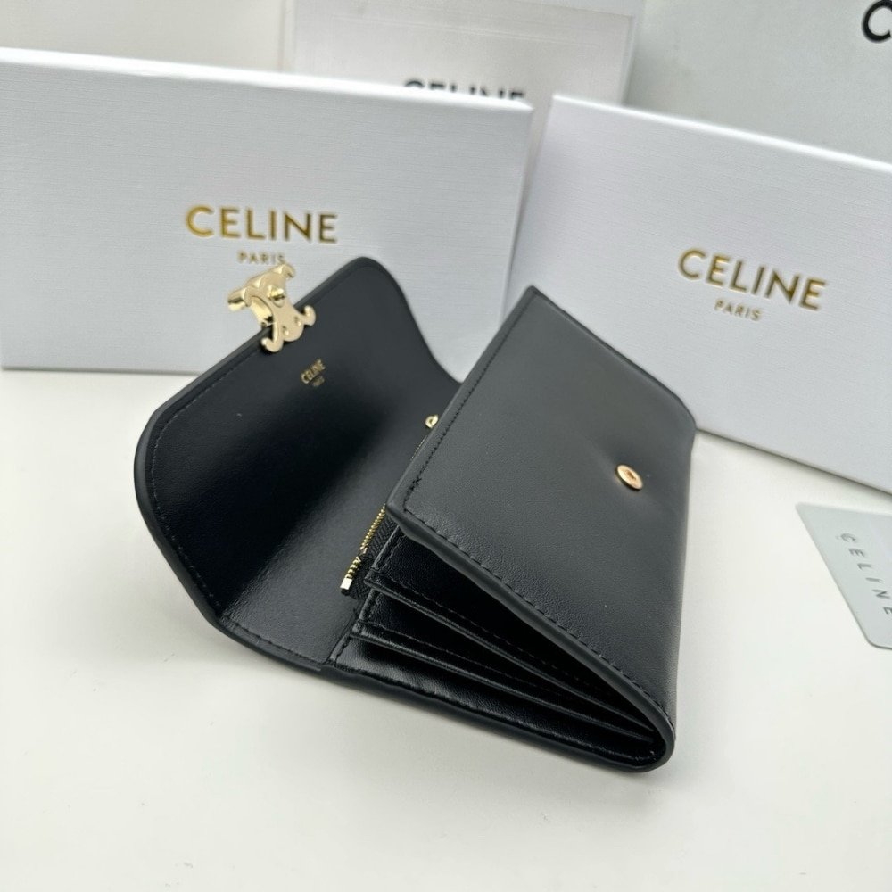 Celine Large Wallet Triomphe In Shiny Black 19Cm 10E313Dpv 38No