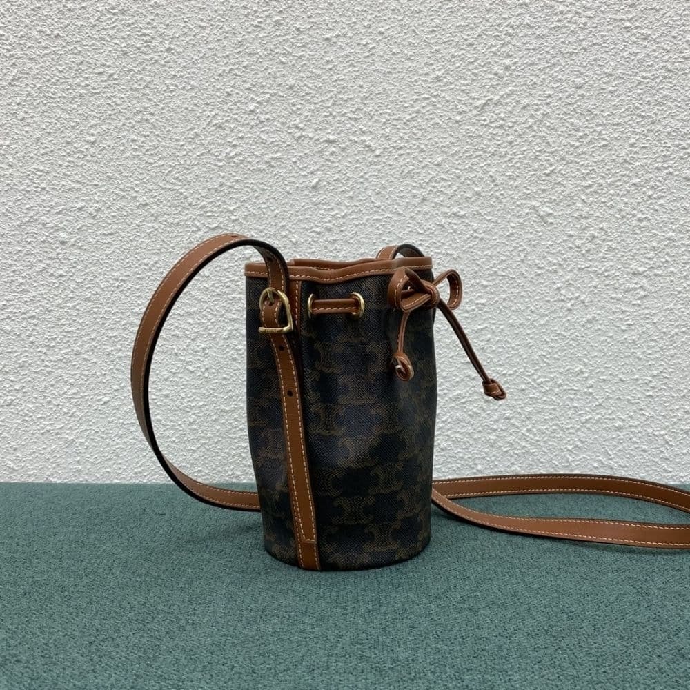 Celine Small Drawstring Bag In Triomphe Canvas Tan 17Cm 191142Bzj 04Lu