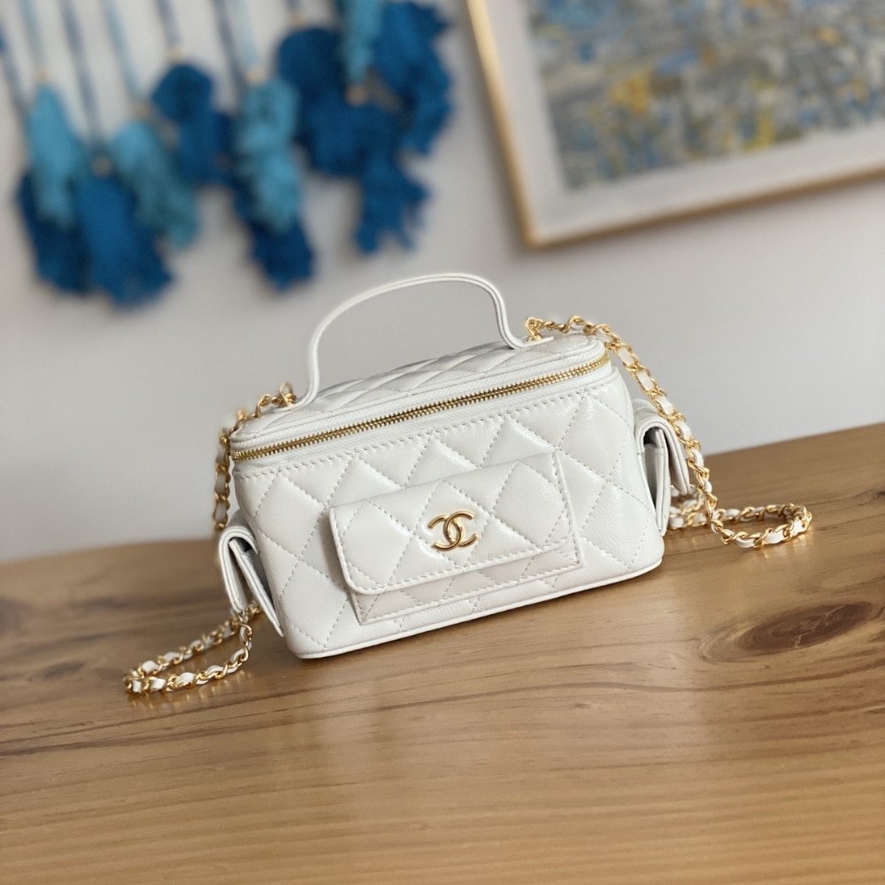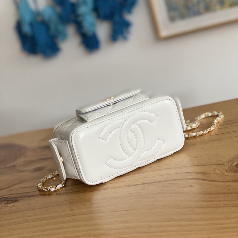 Replica 1:1 – Chanel 22K Small Vanity Case With Pockets In White 17cm