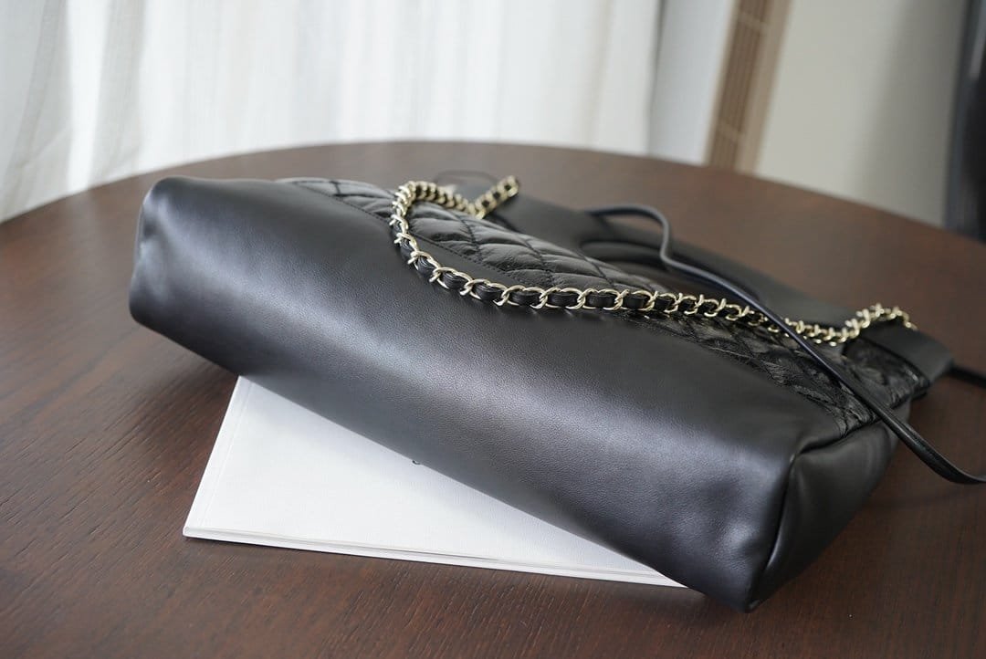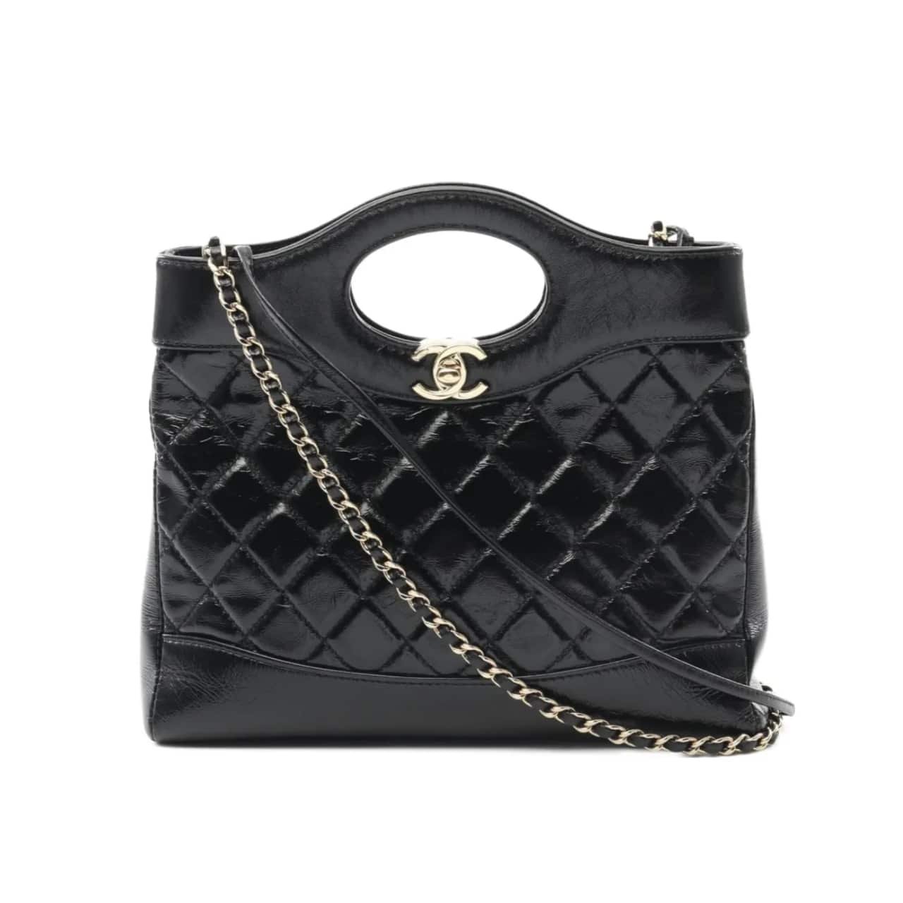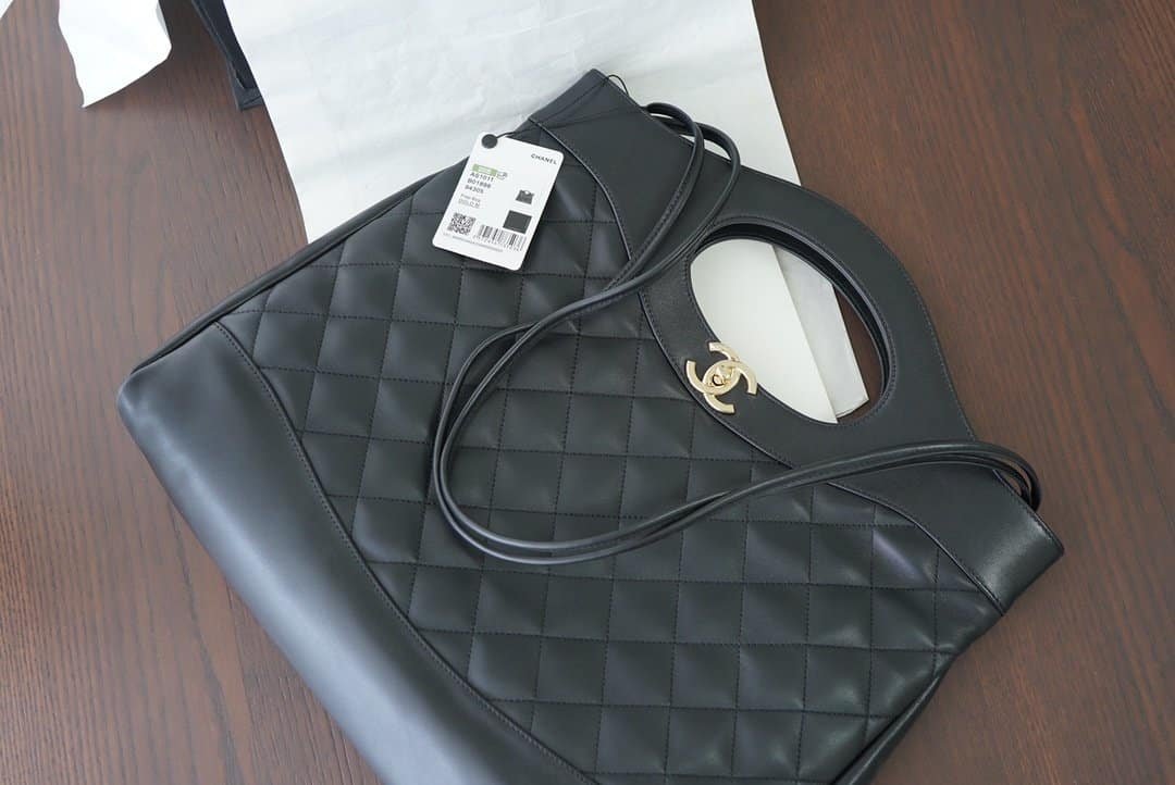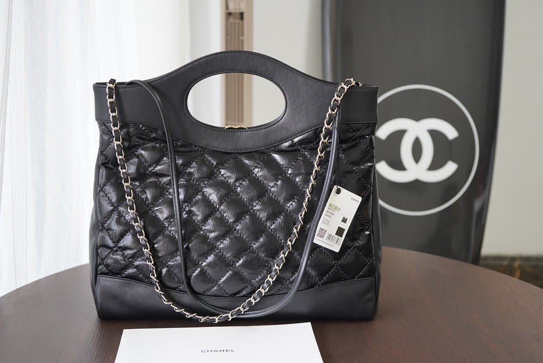 Chanel 31 Large Shiny Leather Handle Bag Gold Hardware Black 37Cm