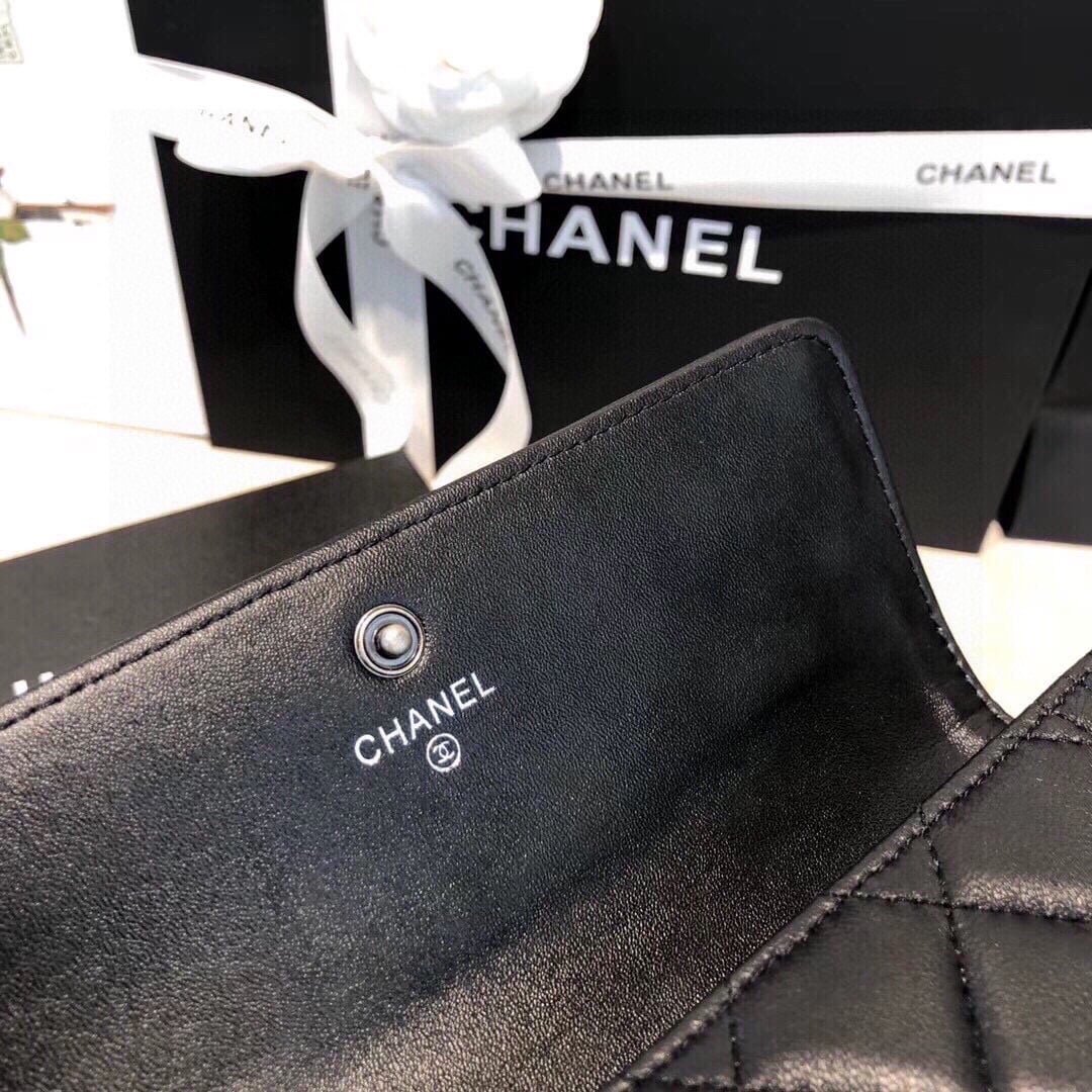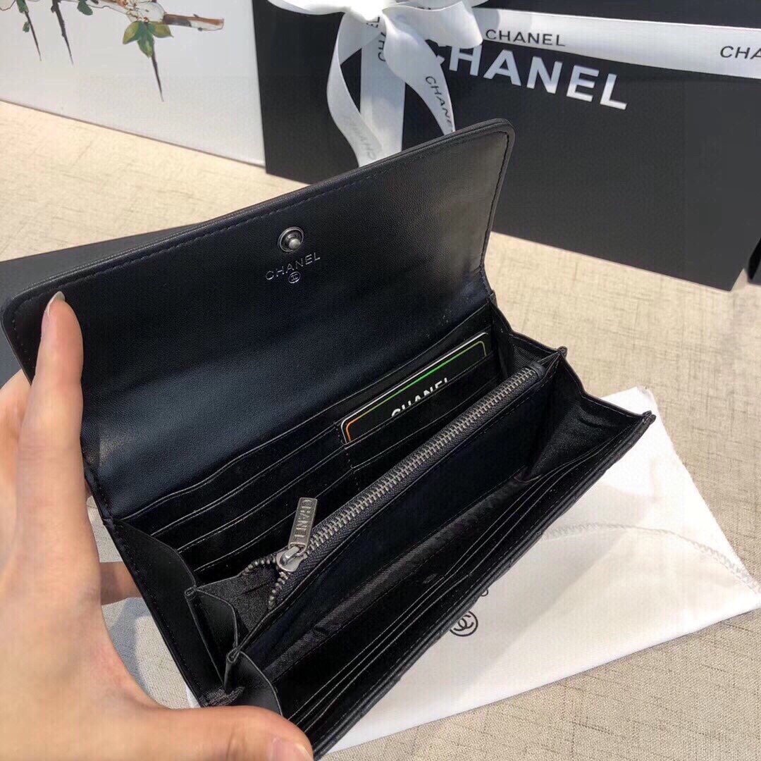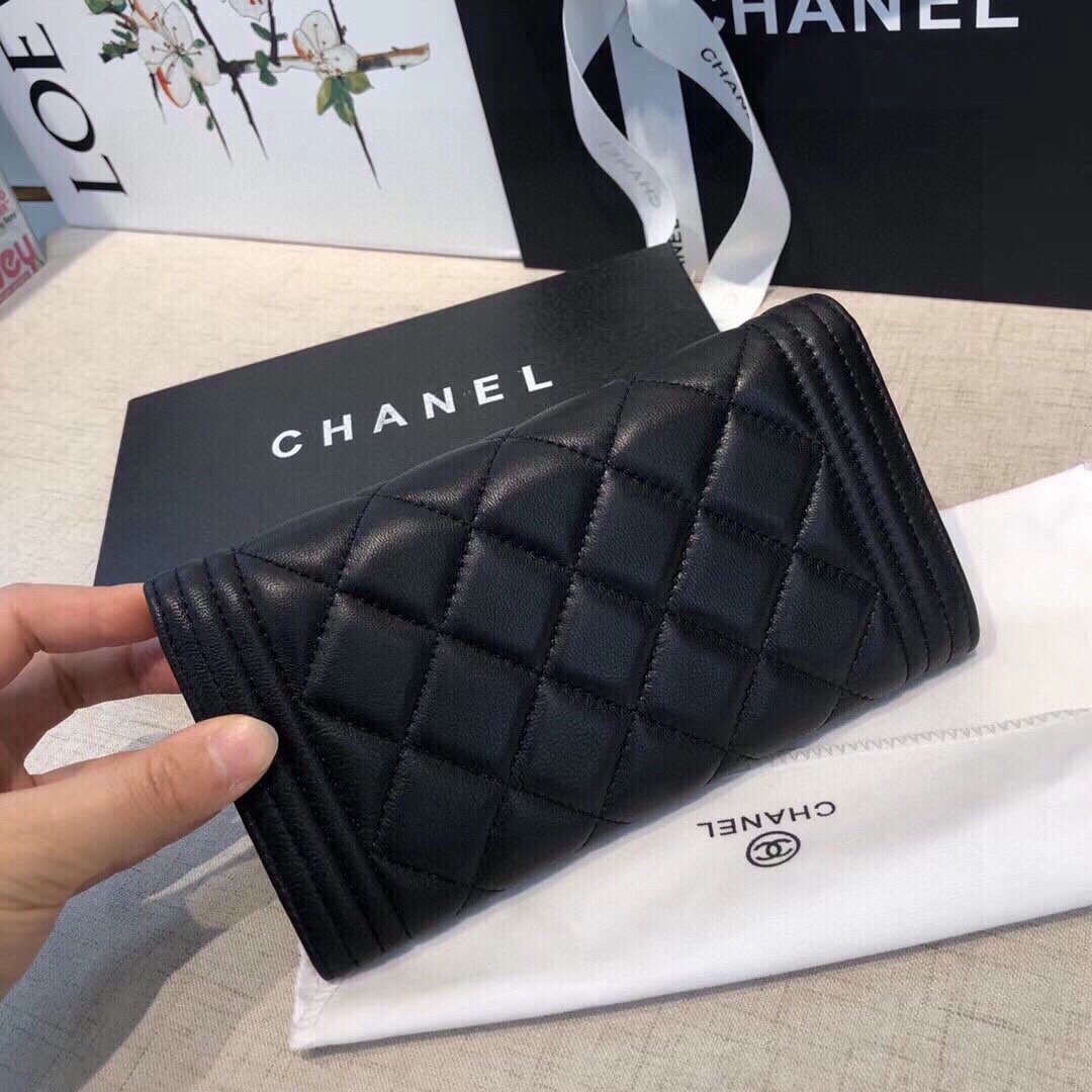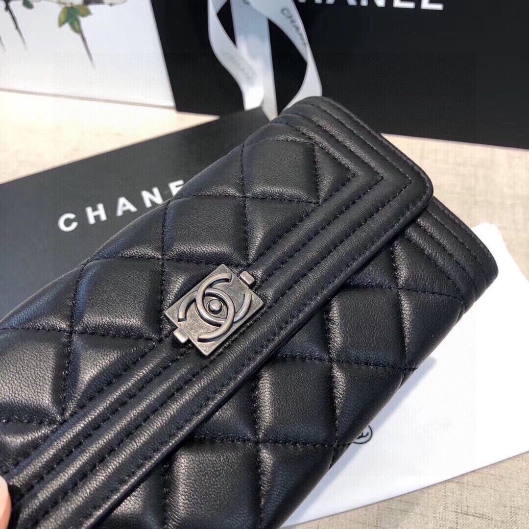 Chanel Boy Flap Long Wallet Ruthentium Hardware Black 19Cm