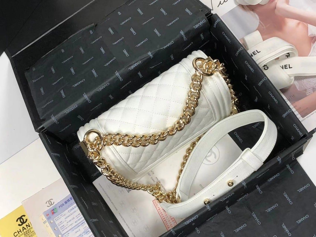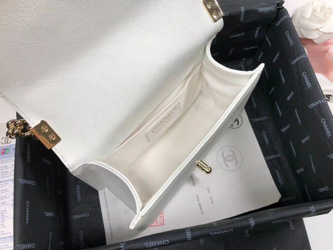 Chanel Boy Flapbag White For Women 7.9in/29cm