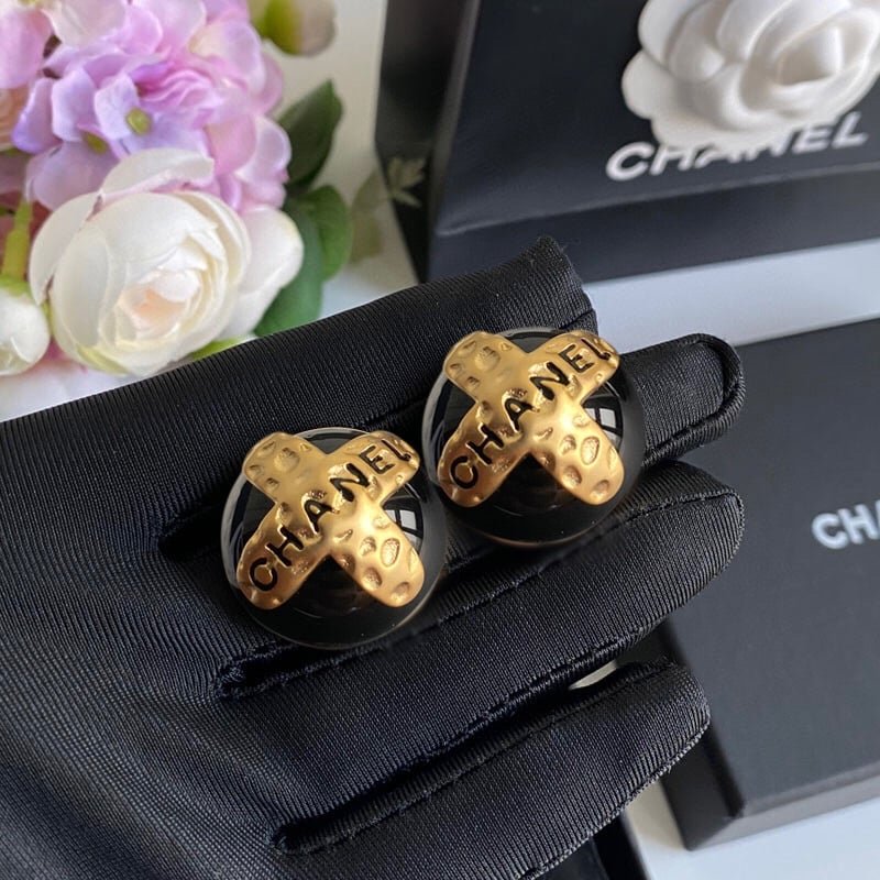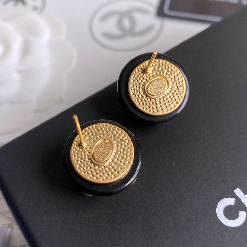 Chanel Button Black Earrings