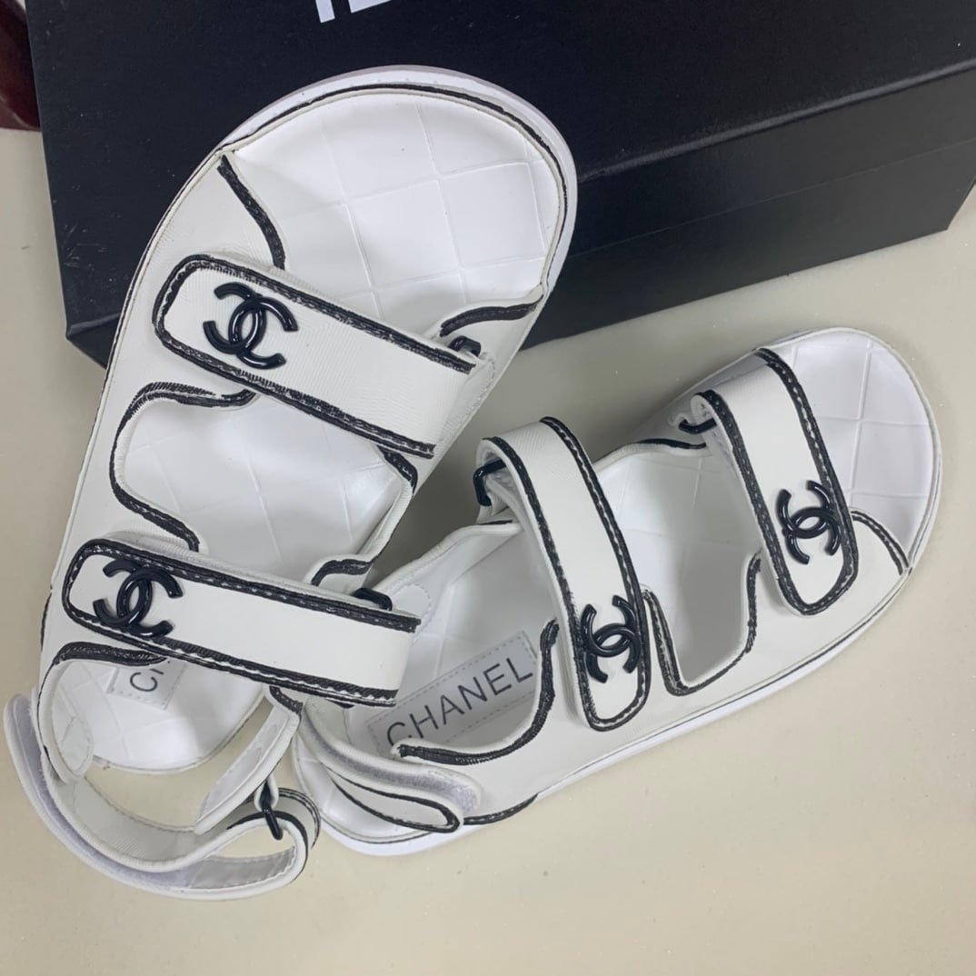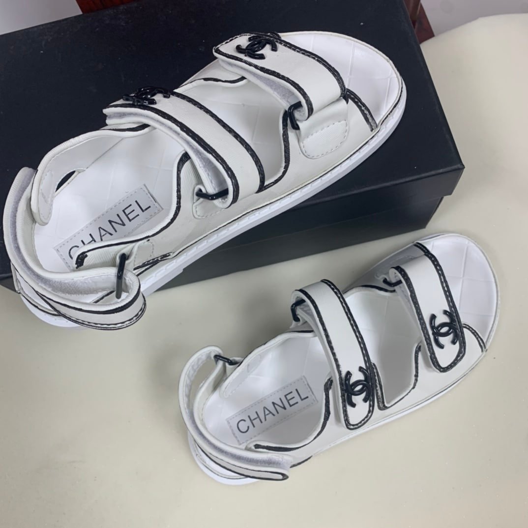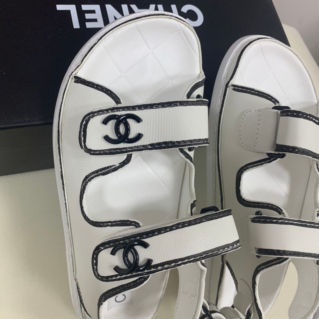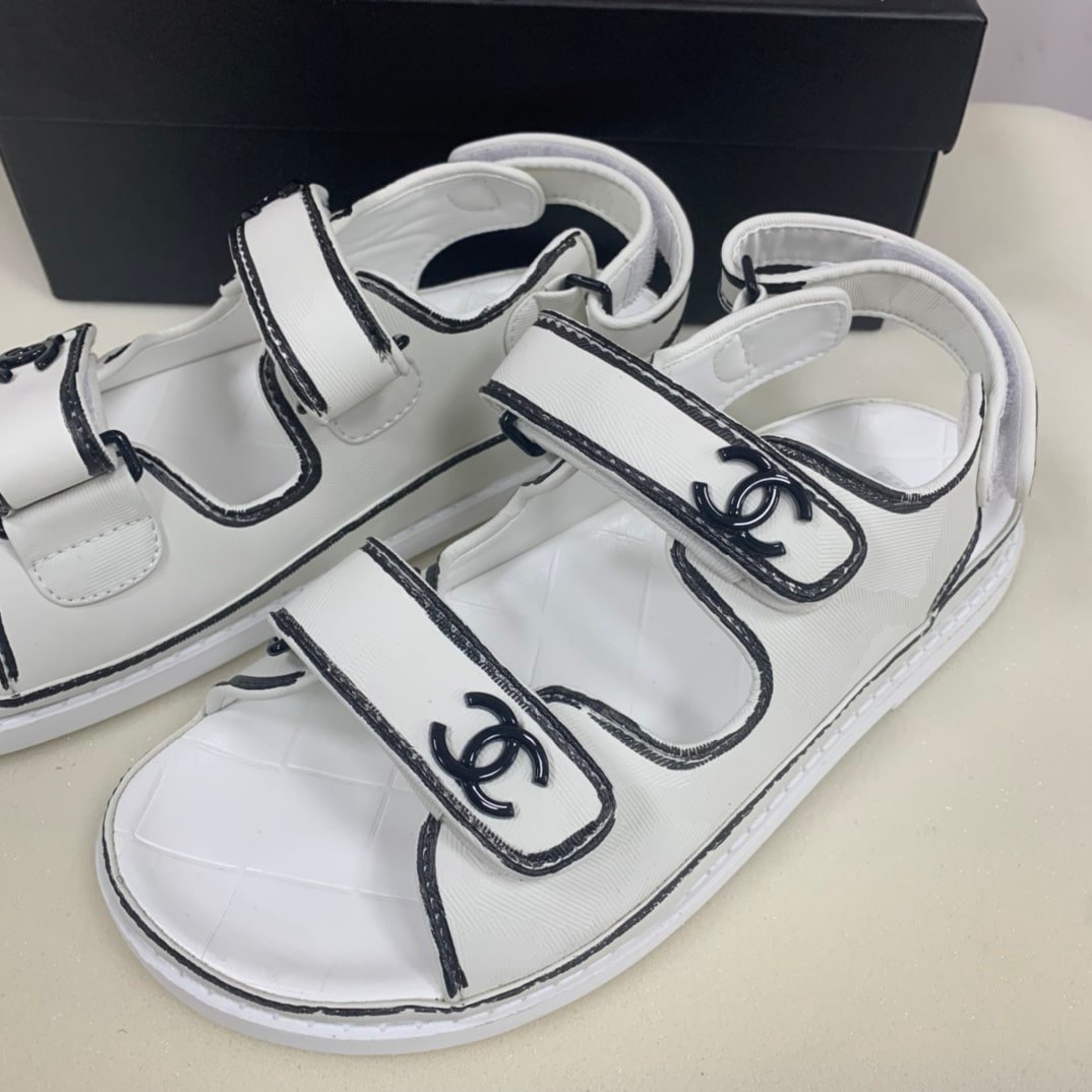 Chanel Calfskin Printed Velcro Dad Sandals White Black