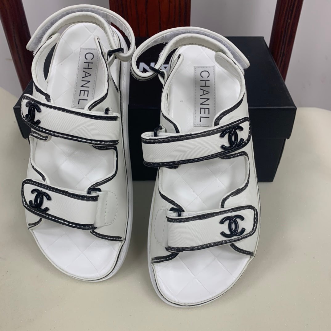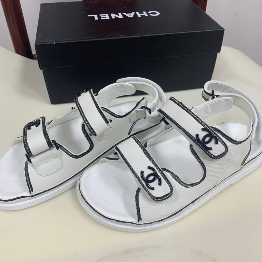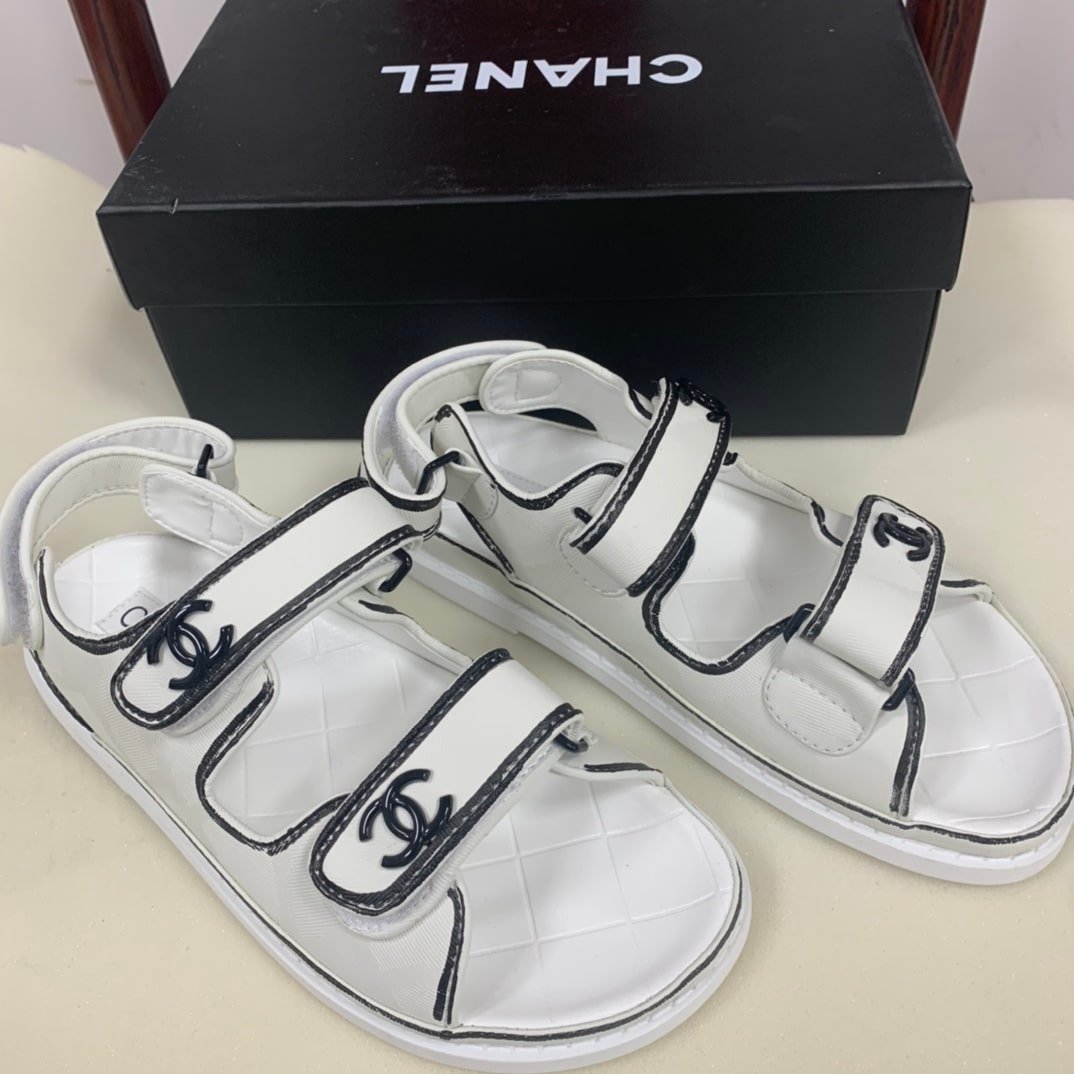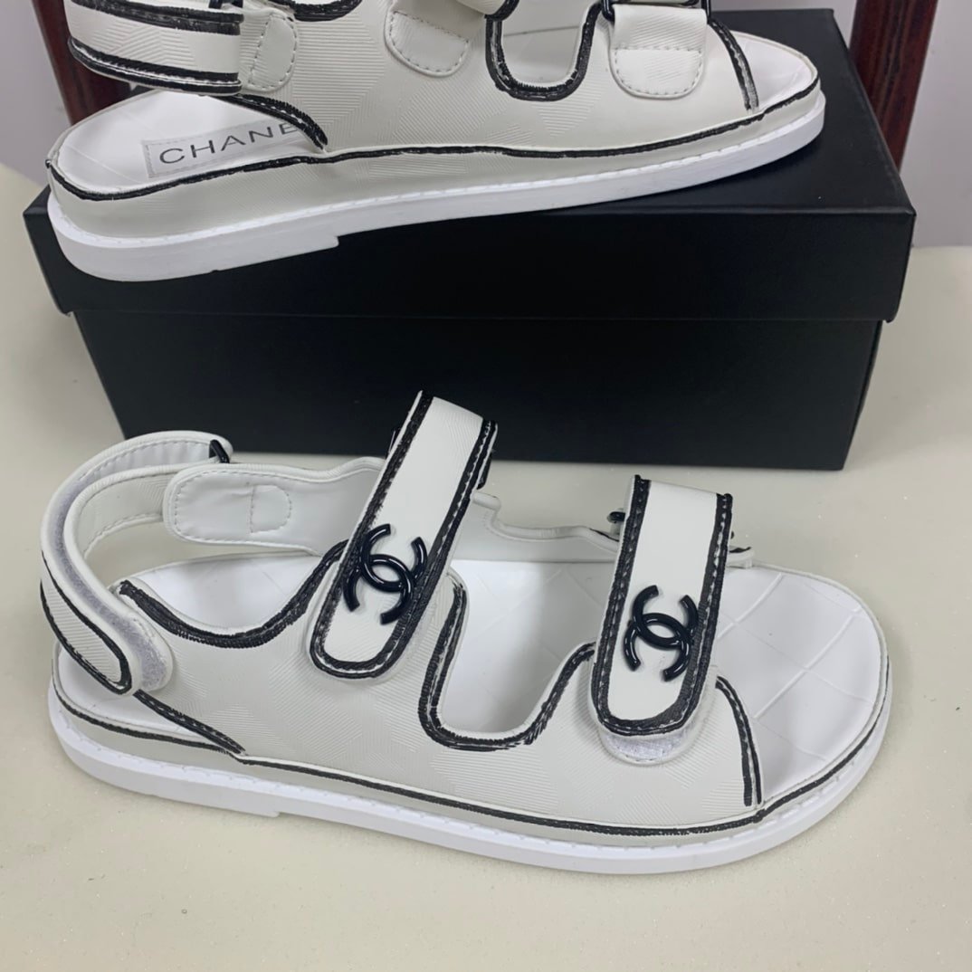 Chanel Calfskin Printed Velcro Dad Sandals White Black