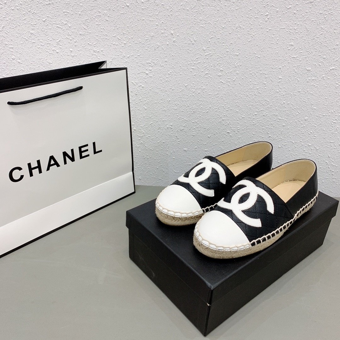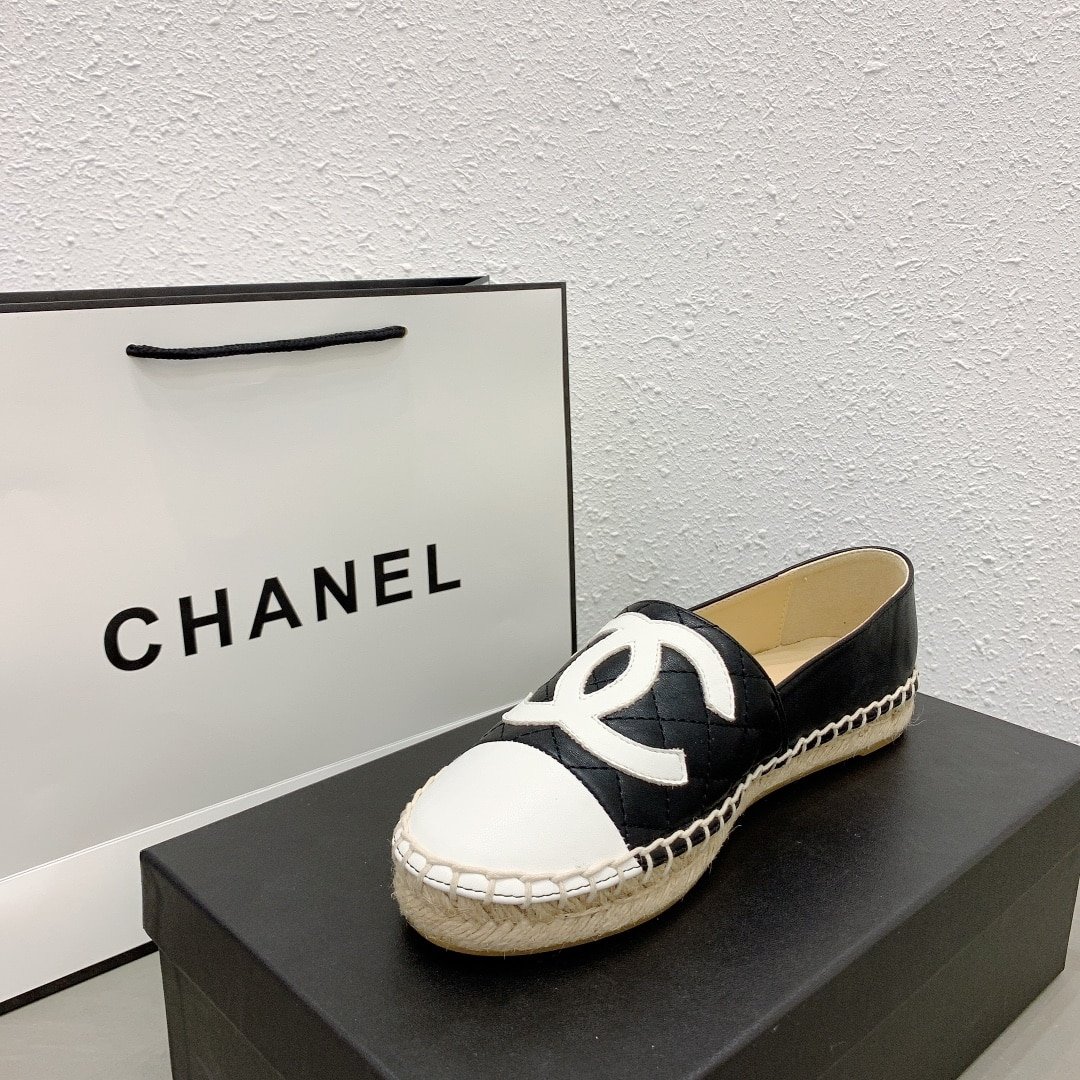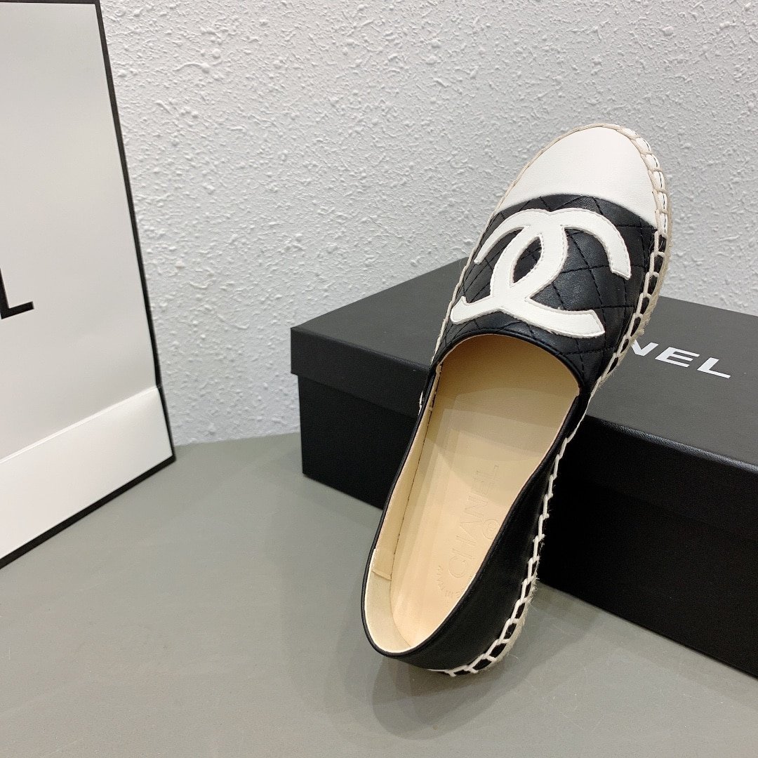 Chanel Cc Espadrilles Slip On White Black
