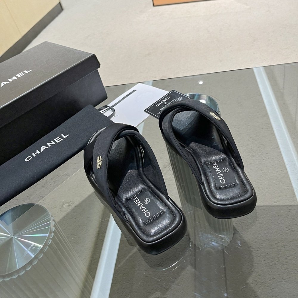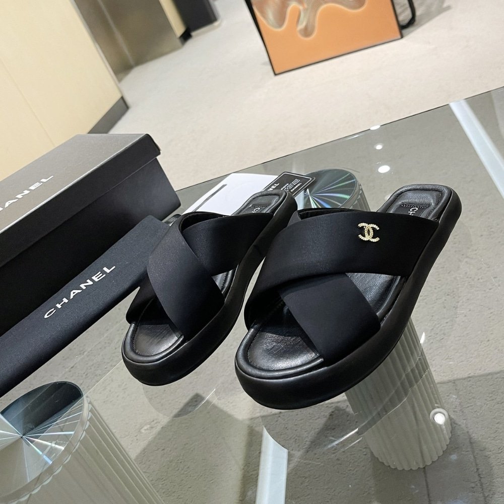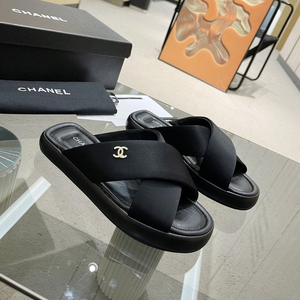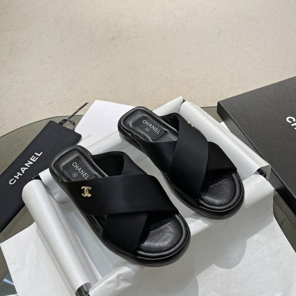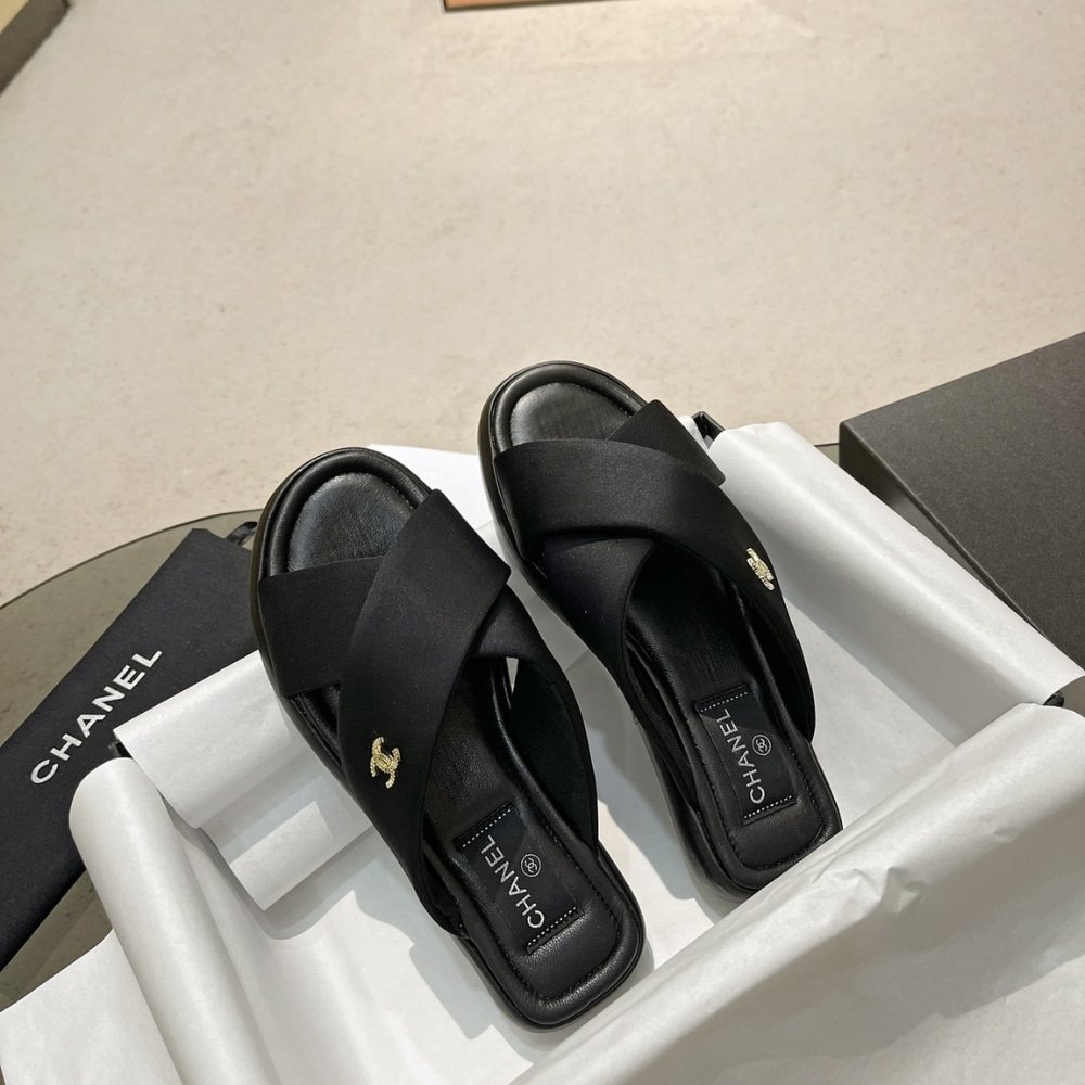 Replica 1:1 – Chanel CC Logo Criss Cross Slides Black
