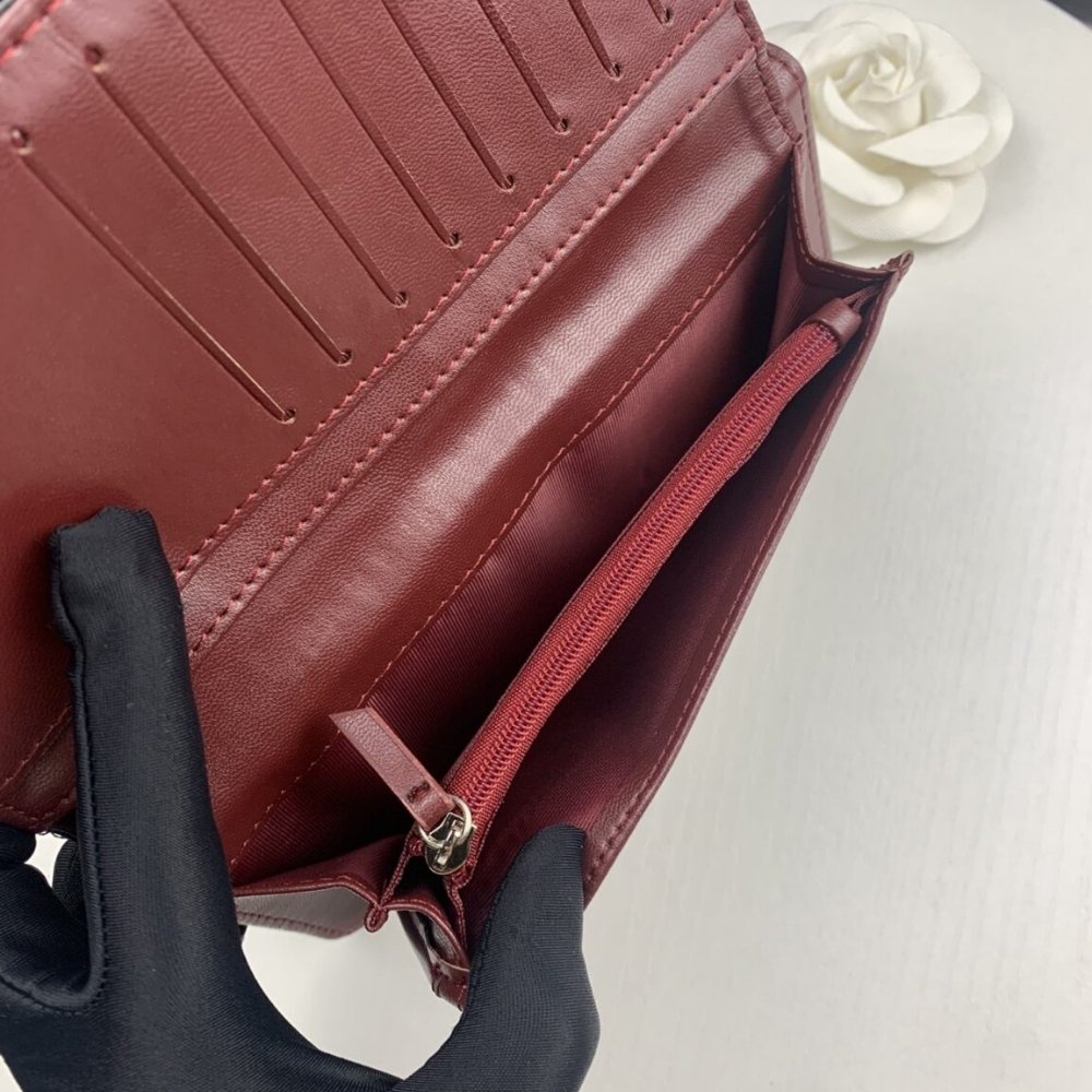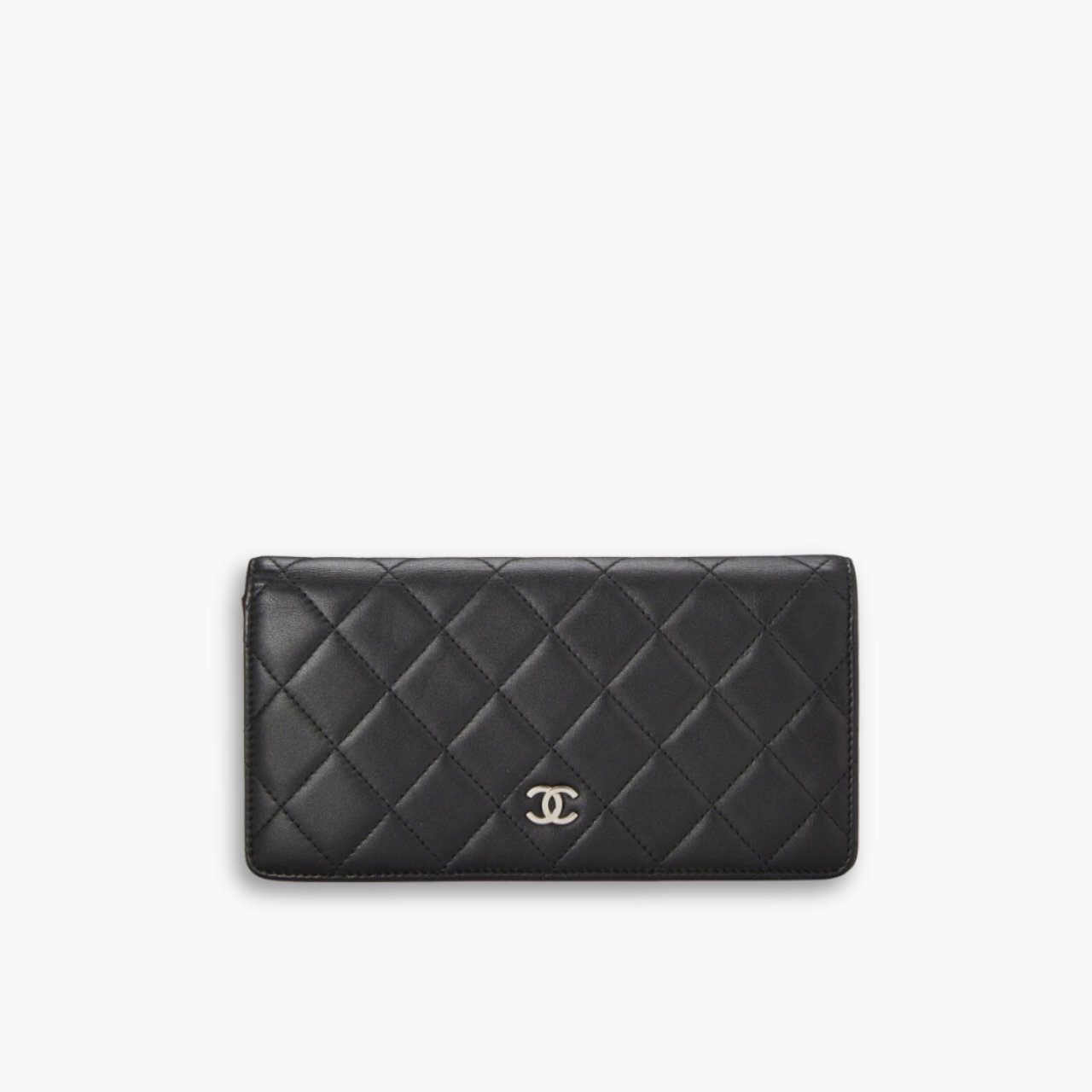 The wallet features the iconic quilted pattern and a silver-toned Chanel logo. It has multiple card slots and a spacious compartment for bills and coins.