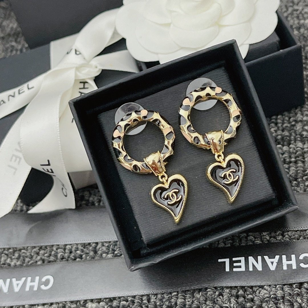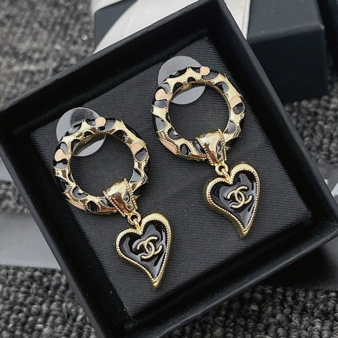 Chanel Classic Love Double C Logo Leopard Round Earrings