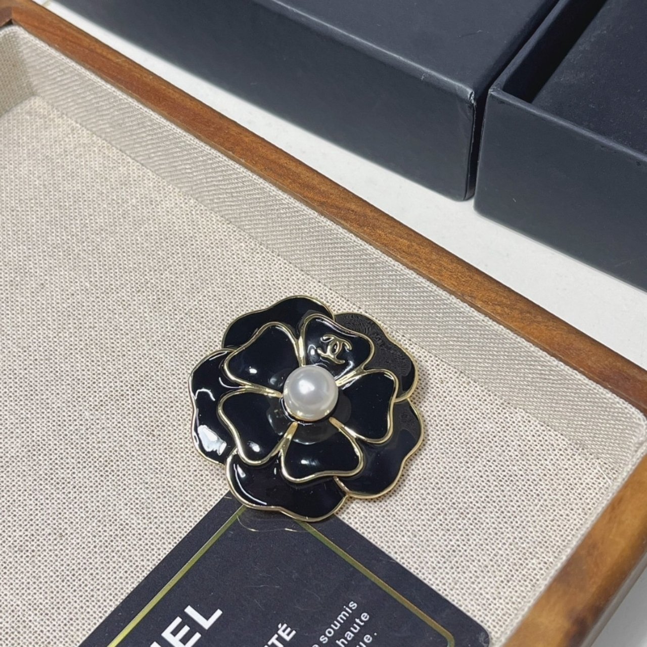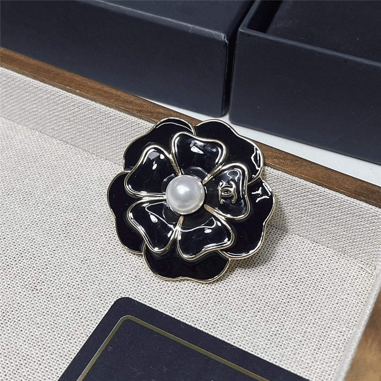 Replica 1:1 – Chanel Flower Brooch Black And Pearly White