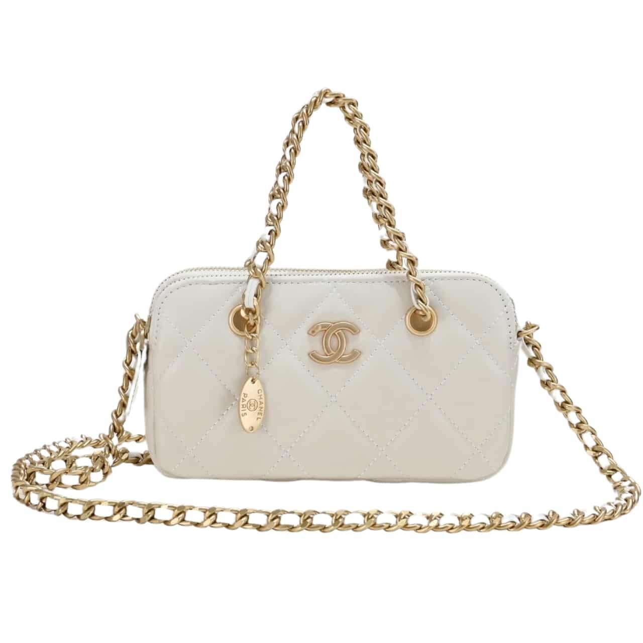 Be the first to review “Chanel Handbag Gold Tone Metal White 20Cm” Cancel reply
