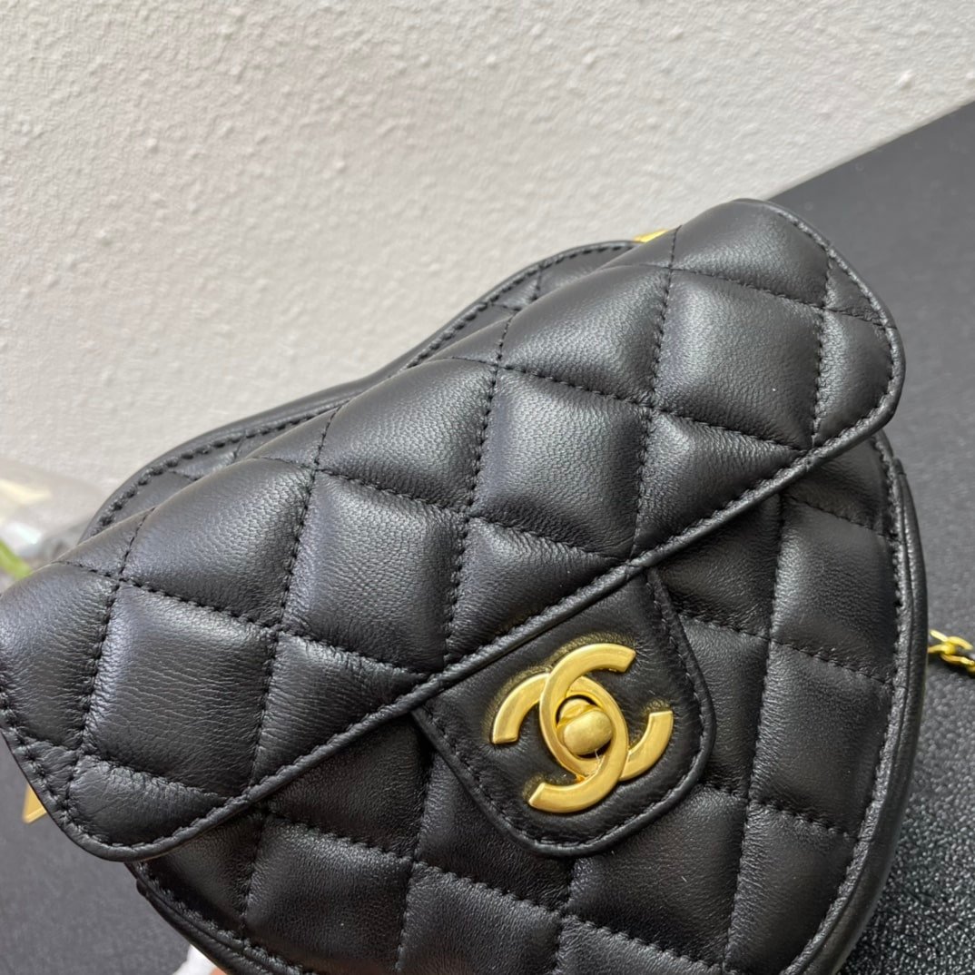 Chanel Heart Clutch With Chain Black 13Cm Ap2784 B08163 94305