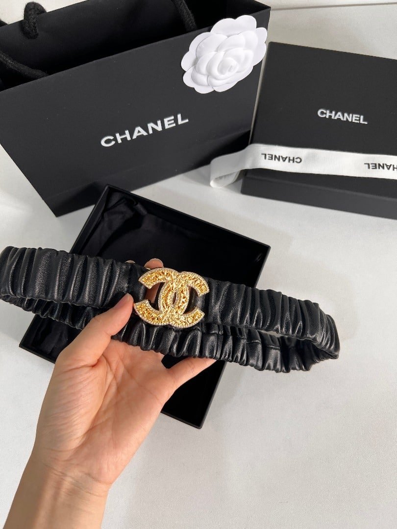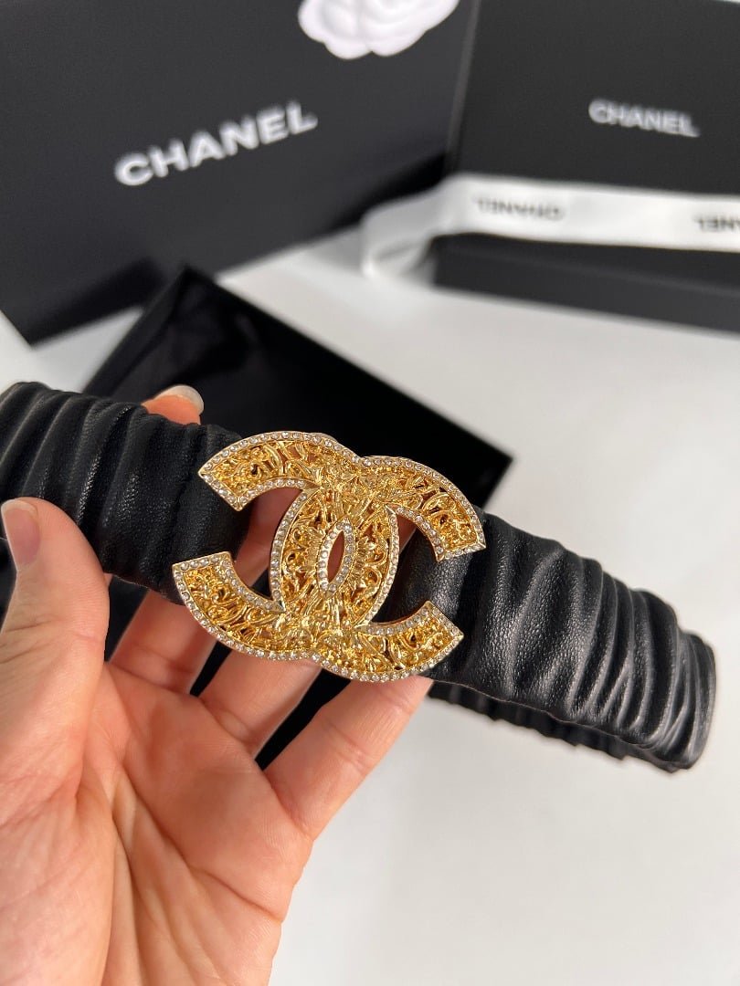 Chanel Leather Belt With Swarovski Stone Variable 30Mm
