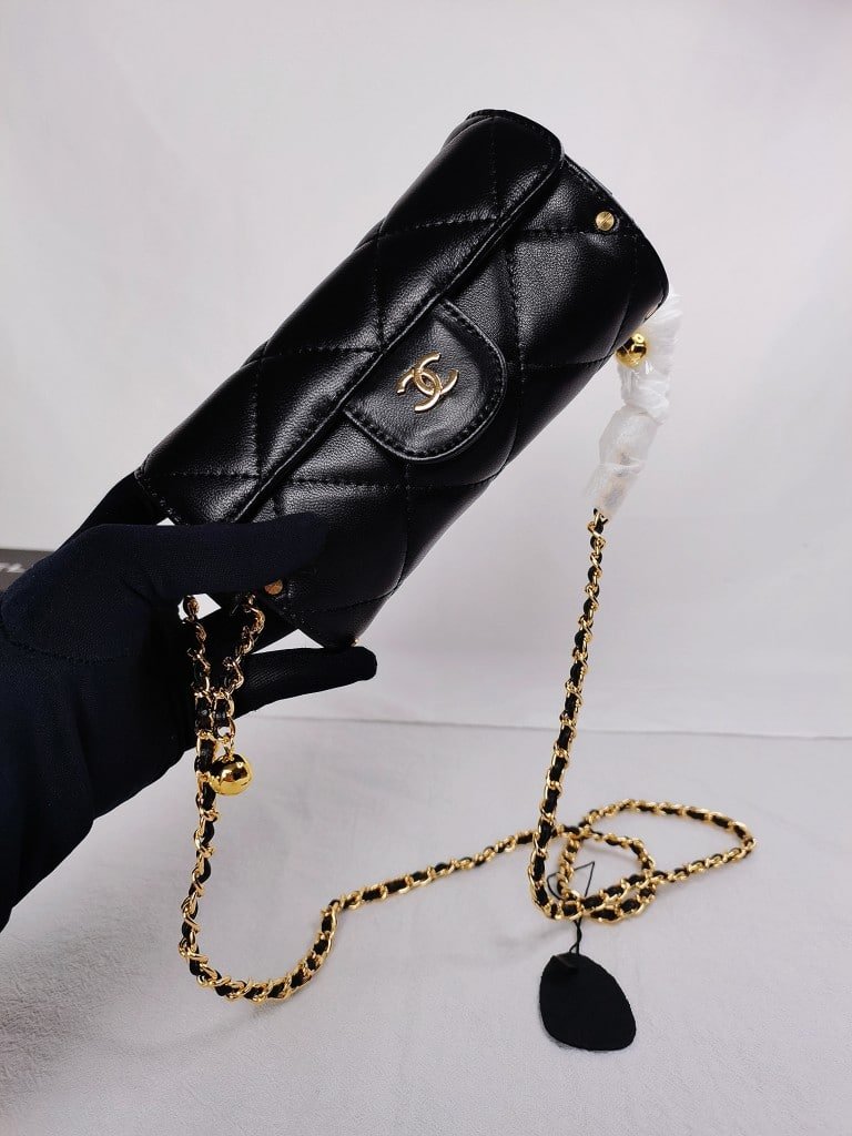 Chanel Lipstick Bag With Chain Ghw Black 15Cm