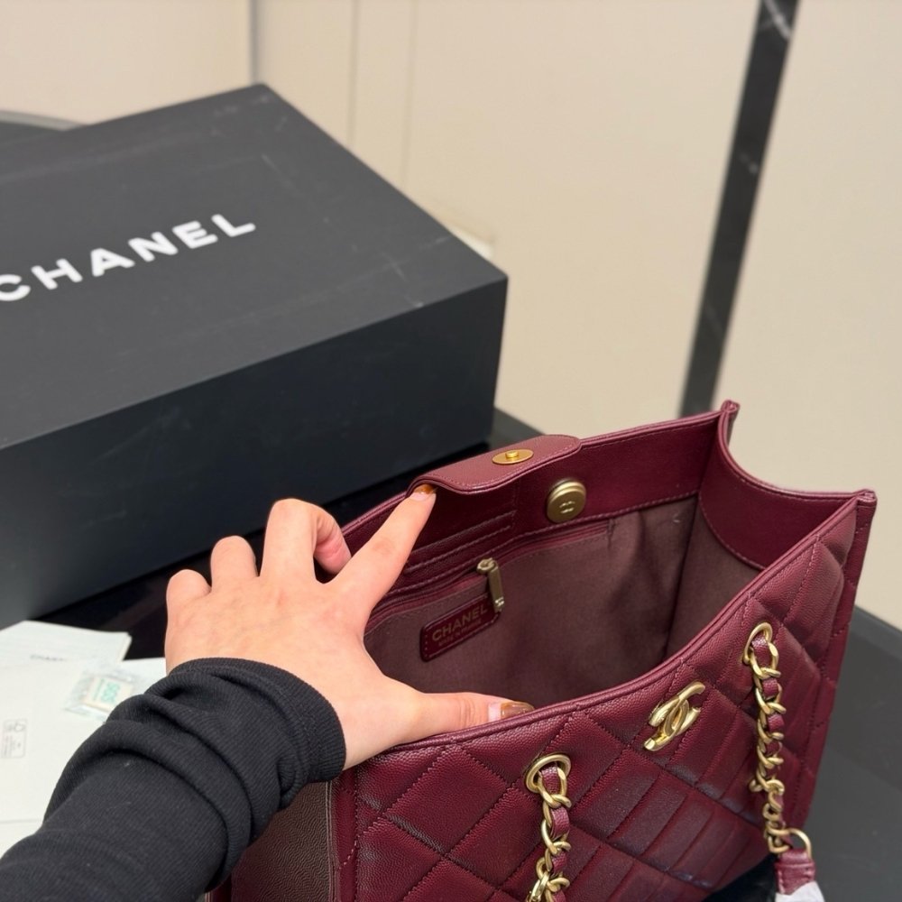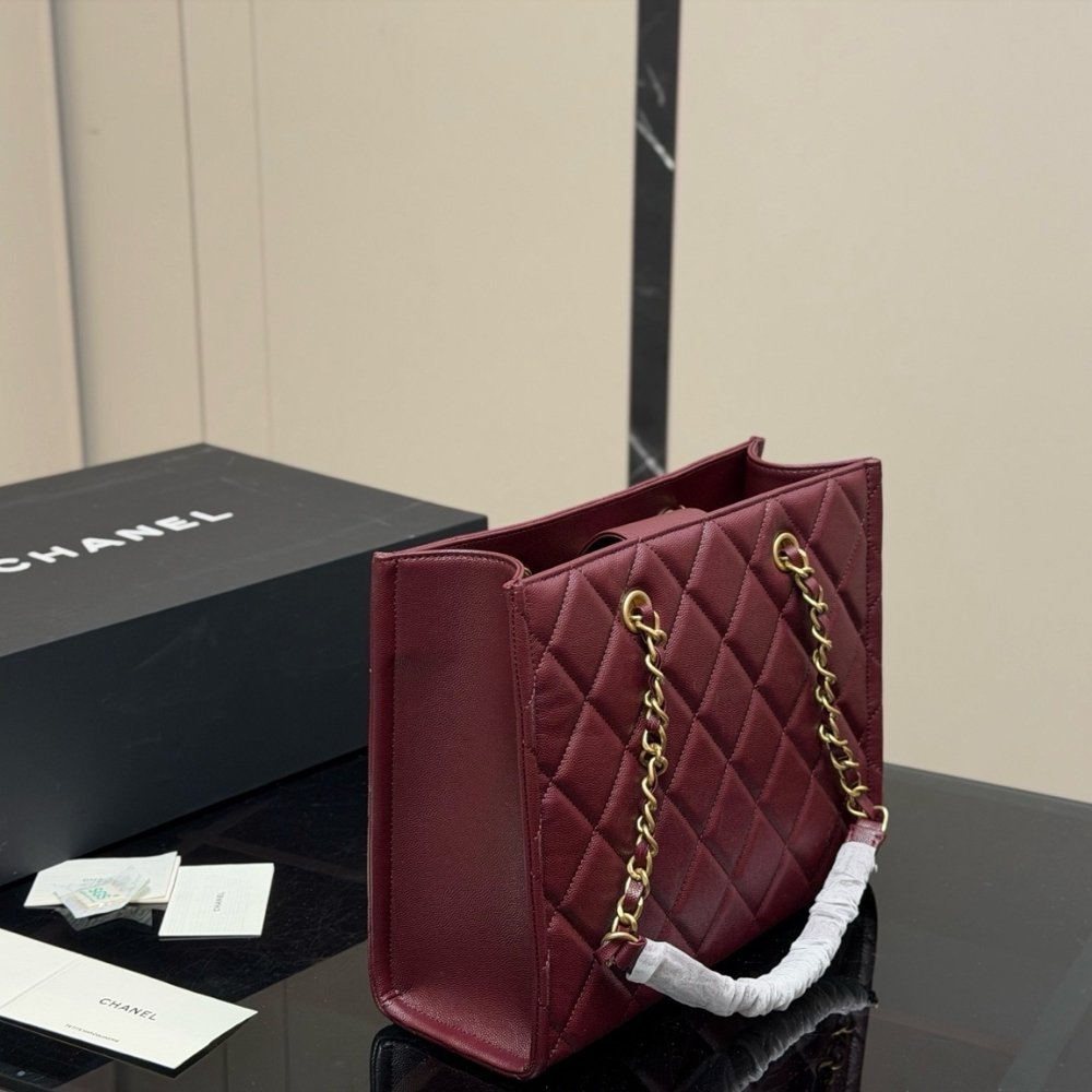 Chanel Small Shopping Bag Gold Tone Burgundy 31Cm AS4940 B17067 NY570