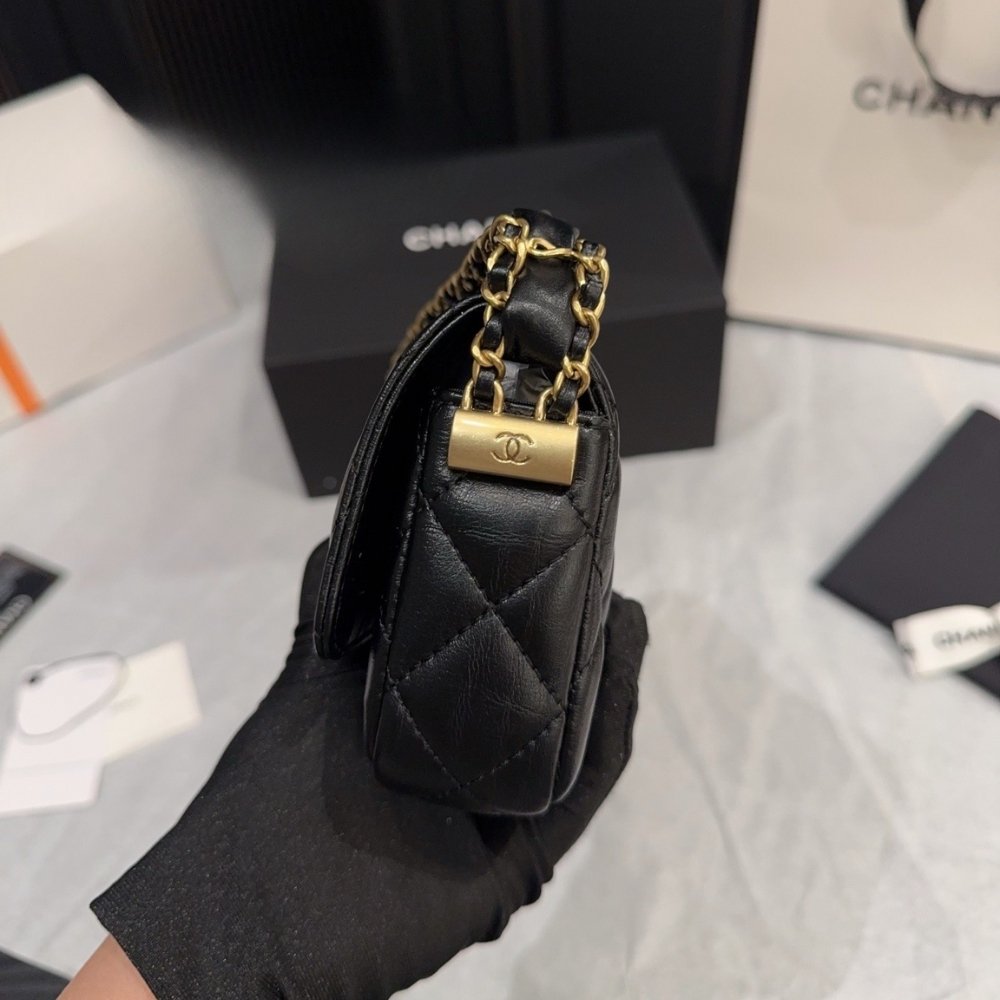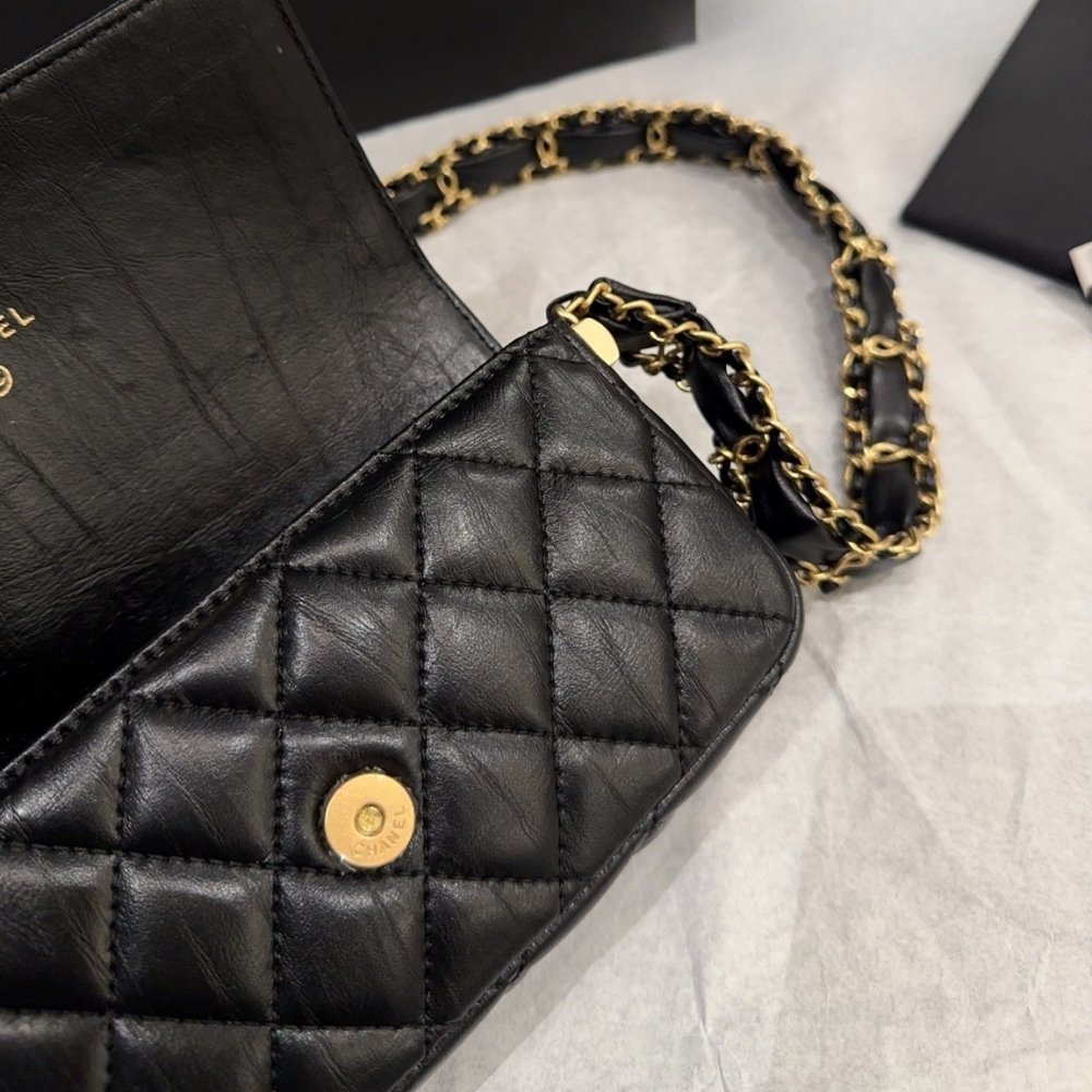 Chanel Phone Holder with Chain Aged Leather Black 18Cm AP3570 B14306 94305