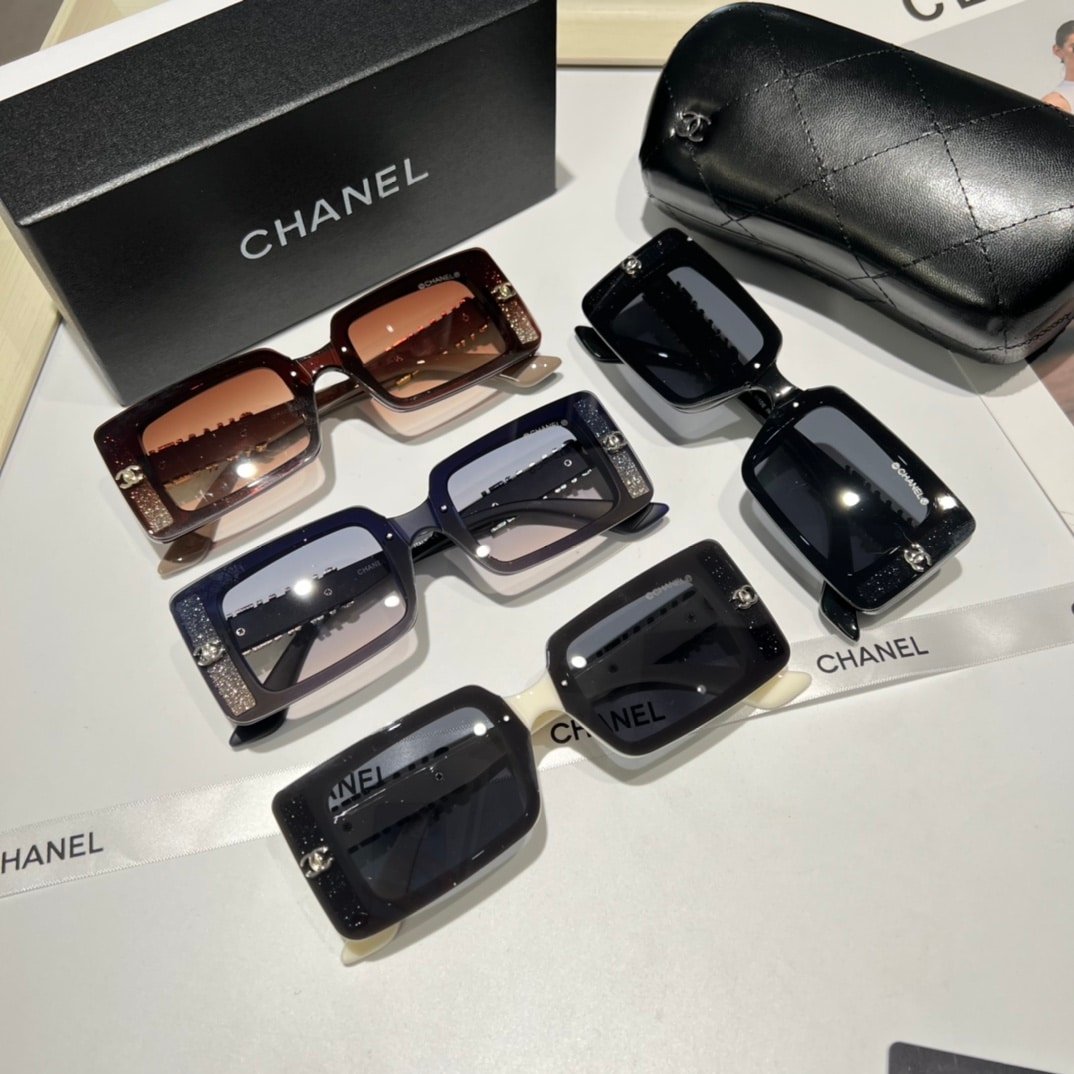 Chanel Rectangle Shiny Design Sunglasses Black White