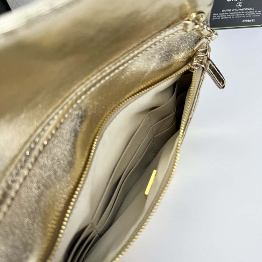 Replica 1:1 – Chanel Small 31 Metallic Crumpled Pouch Bag Gold 24cm