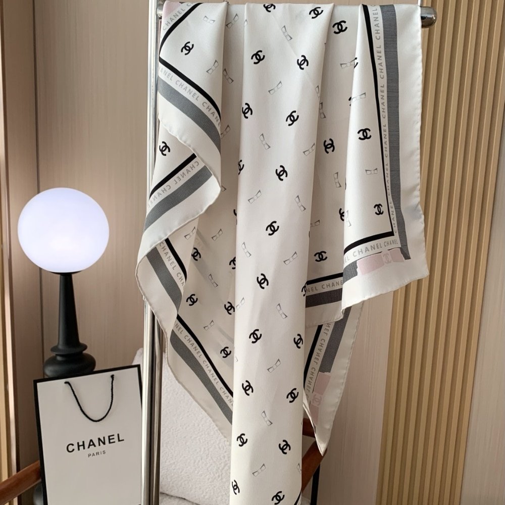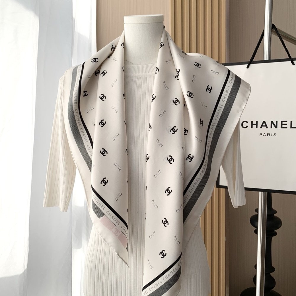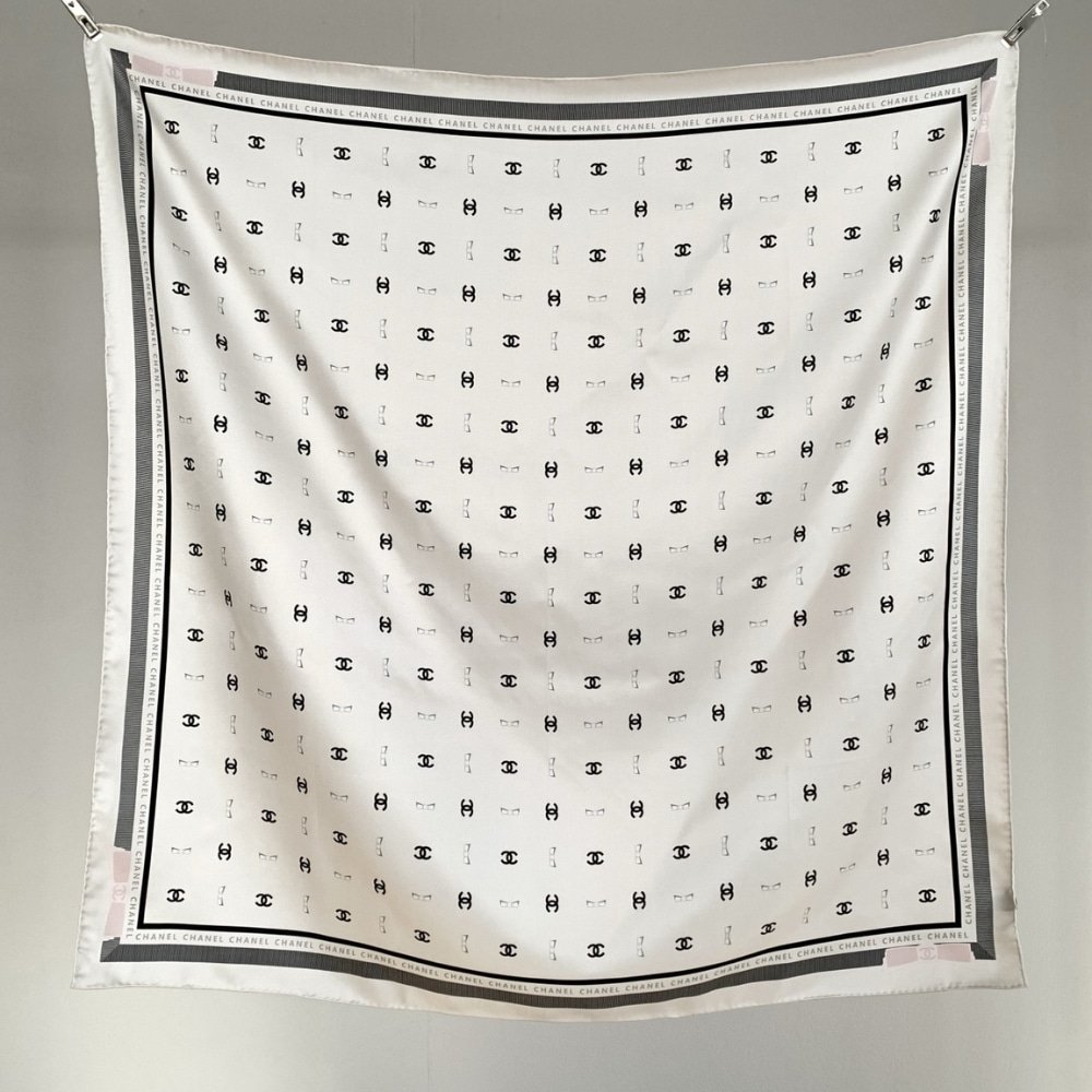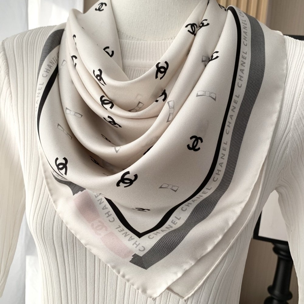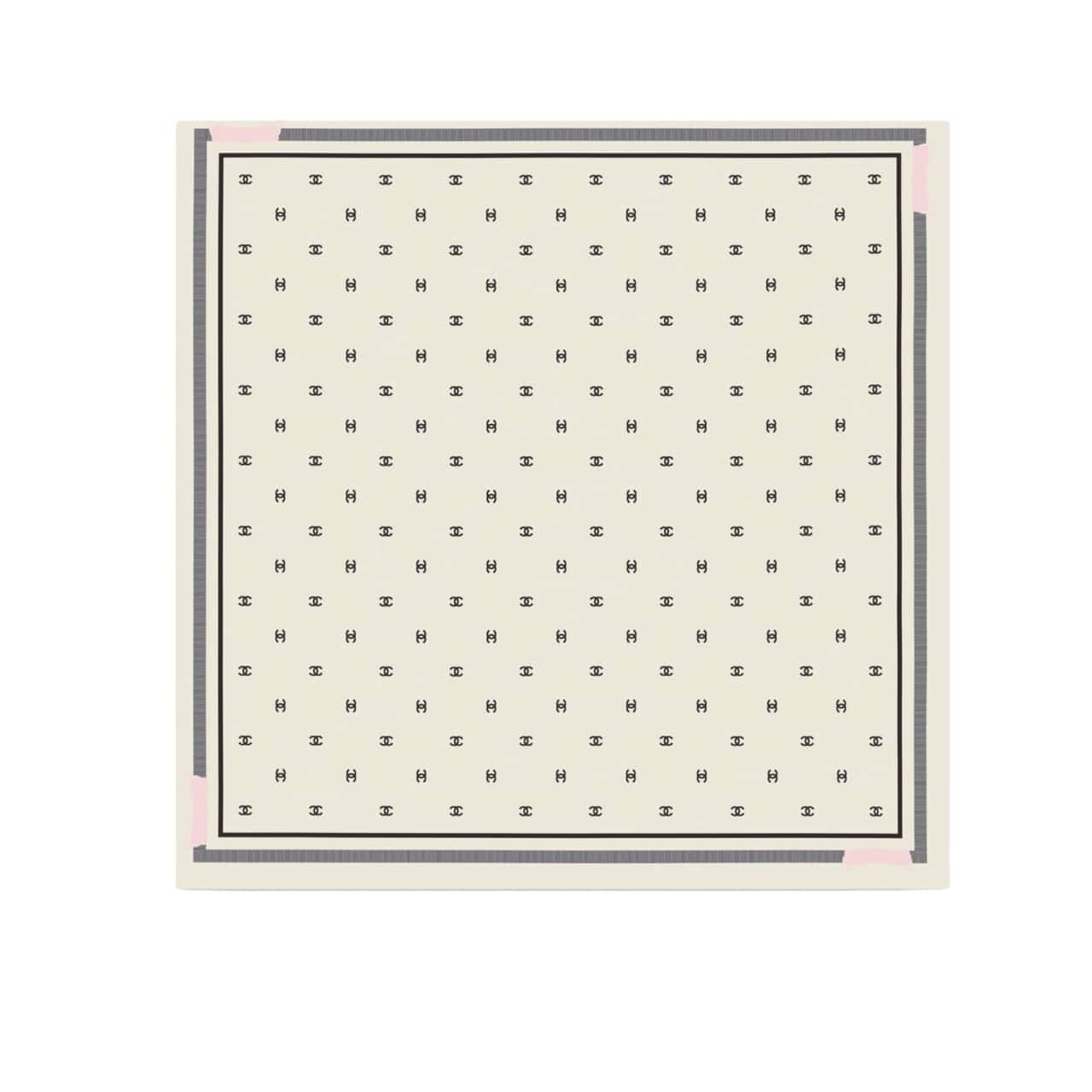 Chanel Square Scarf Jacquard Silk Twill In Ecru Black And Light Pink 90Cm Aaa777 B19447 Nafft