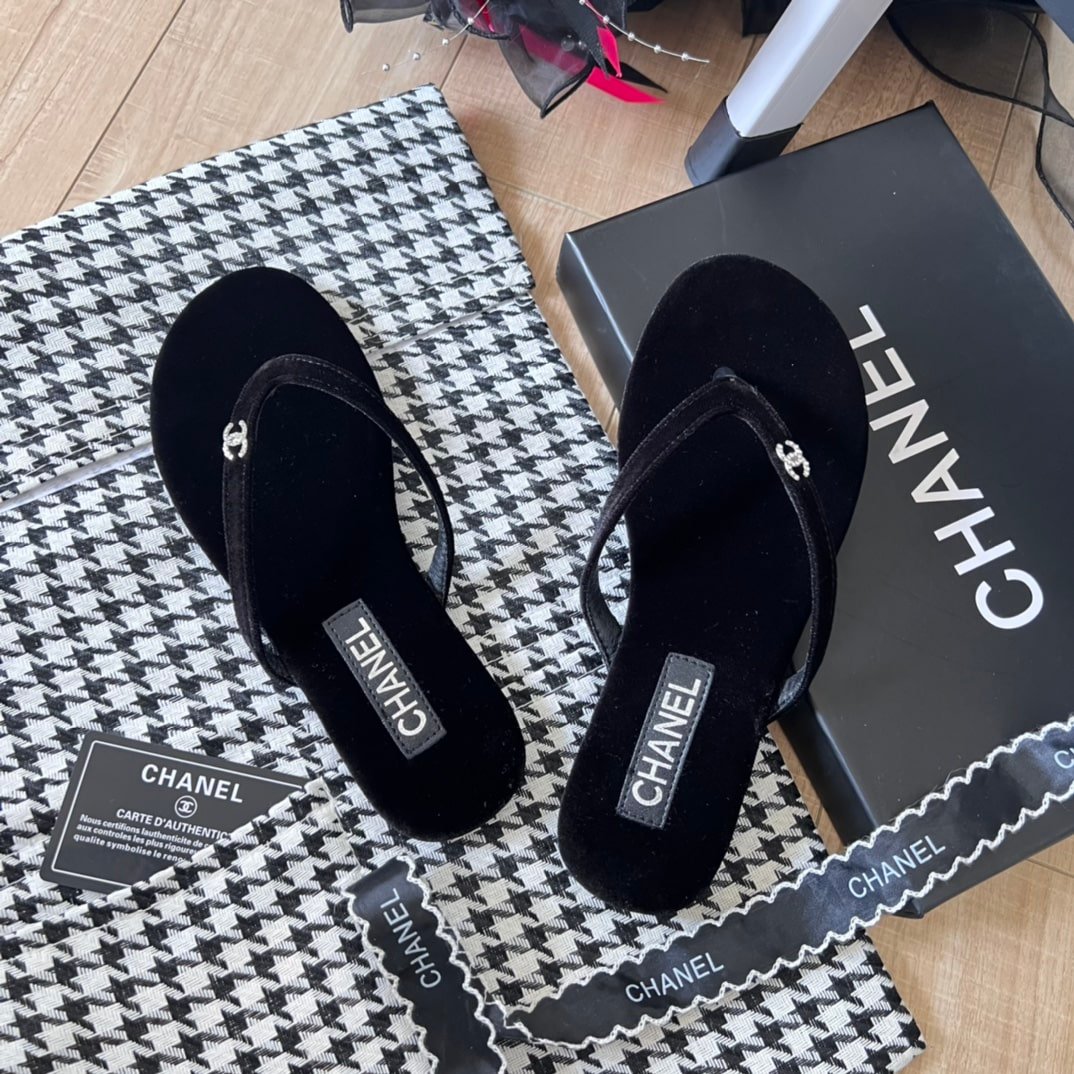 Chanel Thongs Slipper Velvet In Black G45716 B16716 94305