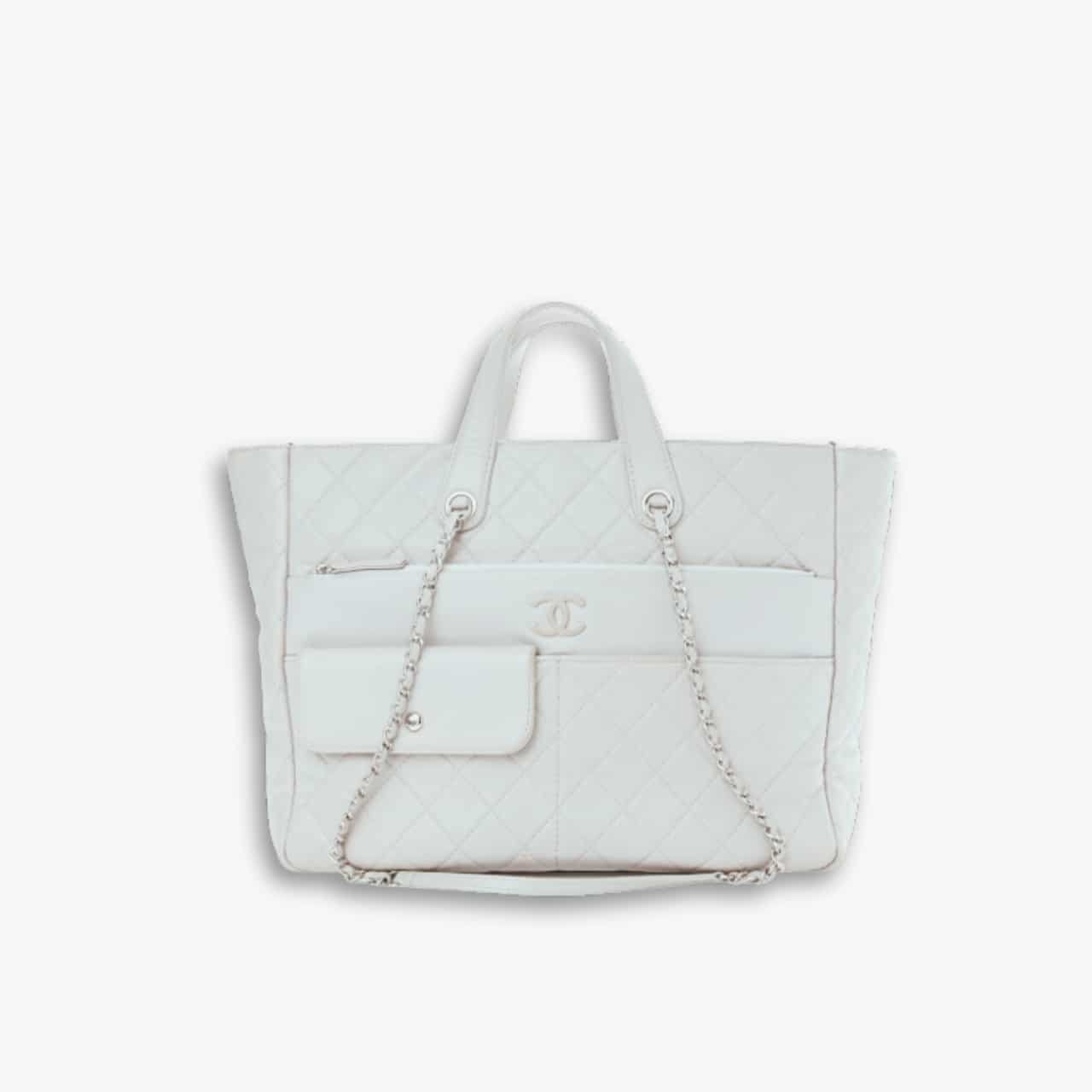 The Chanel Ultra Pocket Shopping Tote in white: a blend of practicality and luxury. Featuring a spacious design with signature pocket detailing, this tote offers effortless style and functionality.