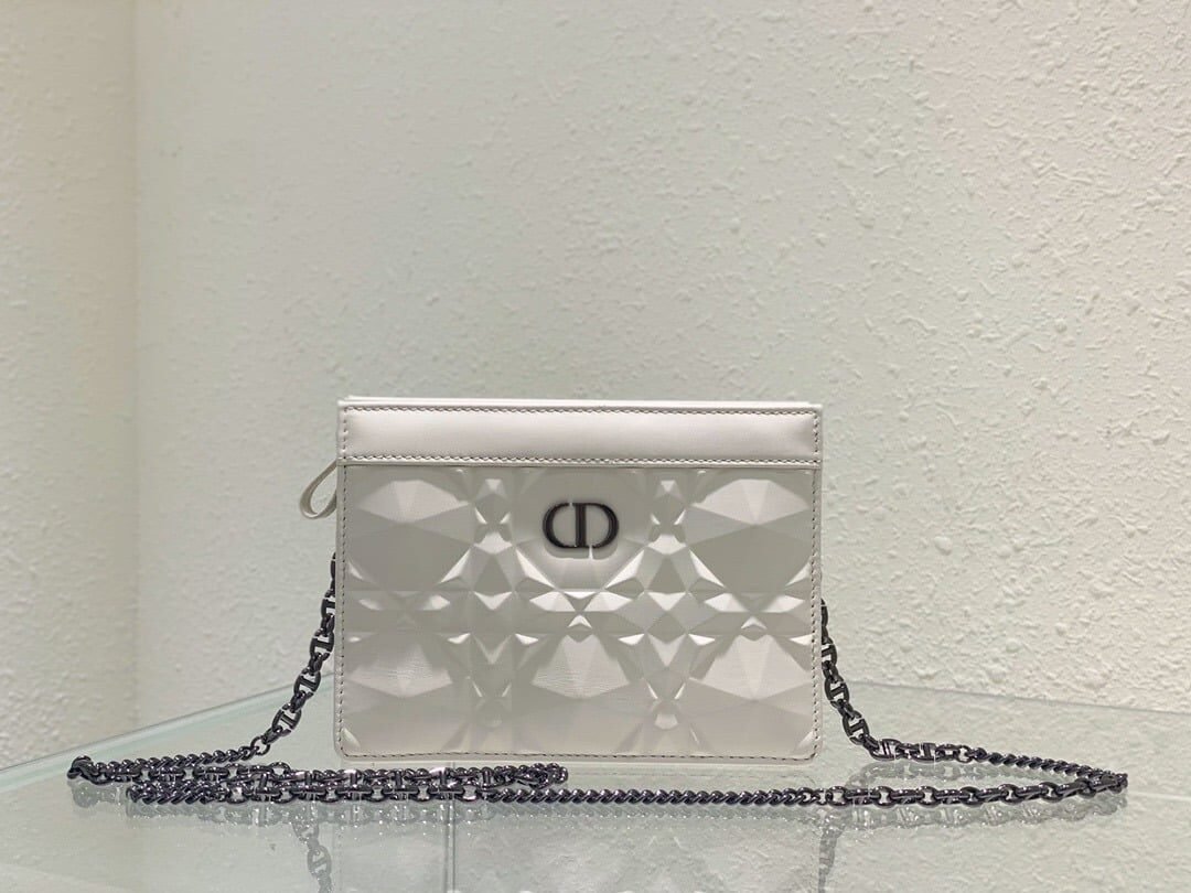 Christian Dior Caro Zipped Pouch With Chain White, For Women, Women’s Handbags 7.5in/19cm CD