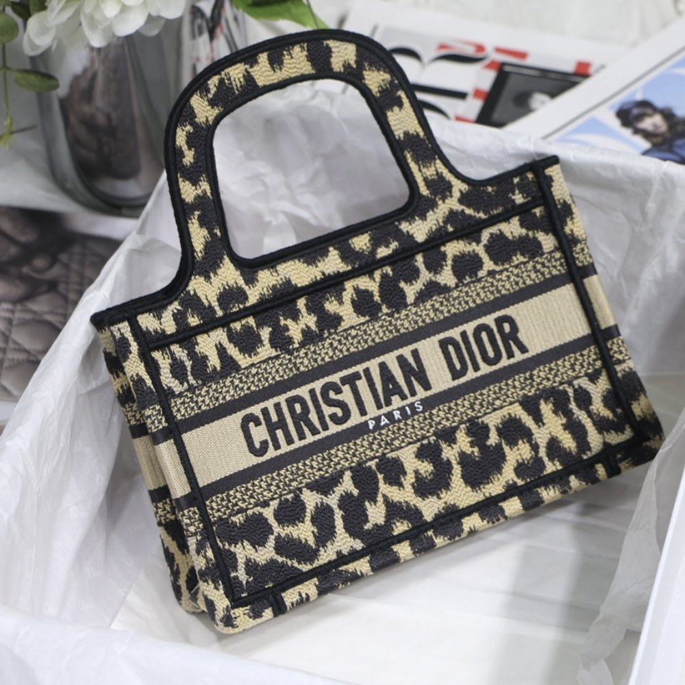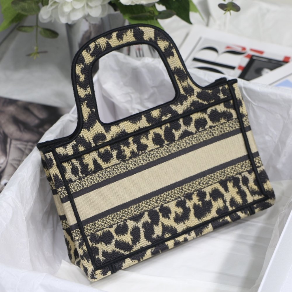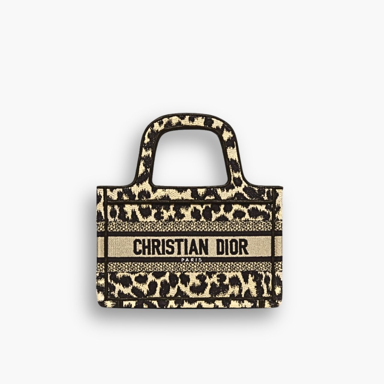 The Dior Mini Book Tote in Beige Multicolor Mizza Embroidery showcases an exotic and artistic take on the classic tote. Featuring a stunning leopard-inspired Mizza pattern in multicolor embroidery, this compact tote brings a bold yet elegant flair to any ensemble. Ideal for carrying essentials, it’s a standout piece that adds luxury.