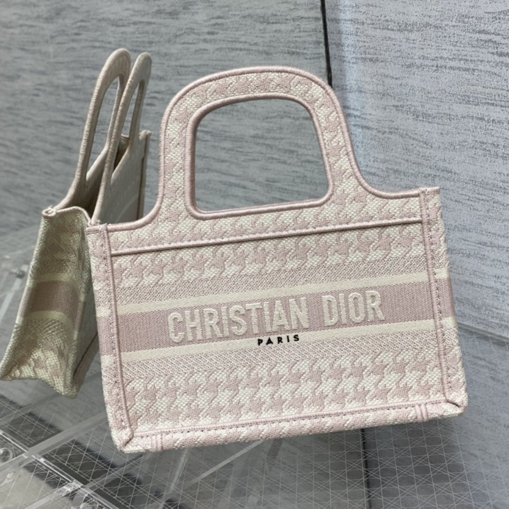 Dior Mini Book Tote Houndstooth Pink 23cm