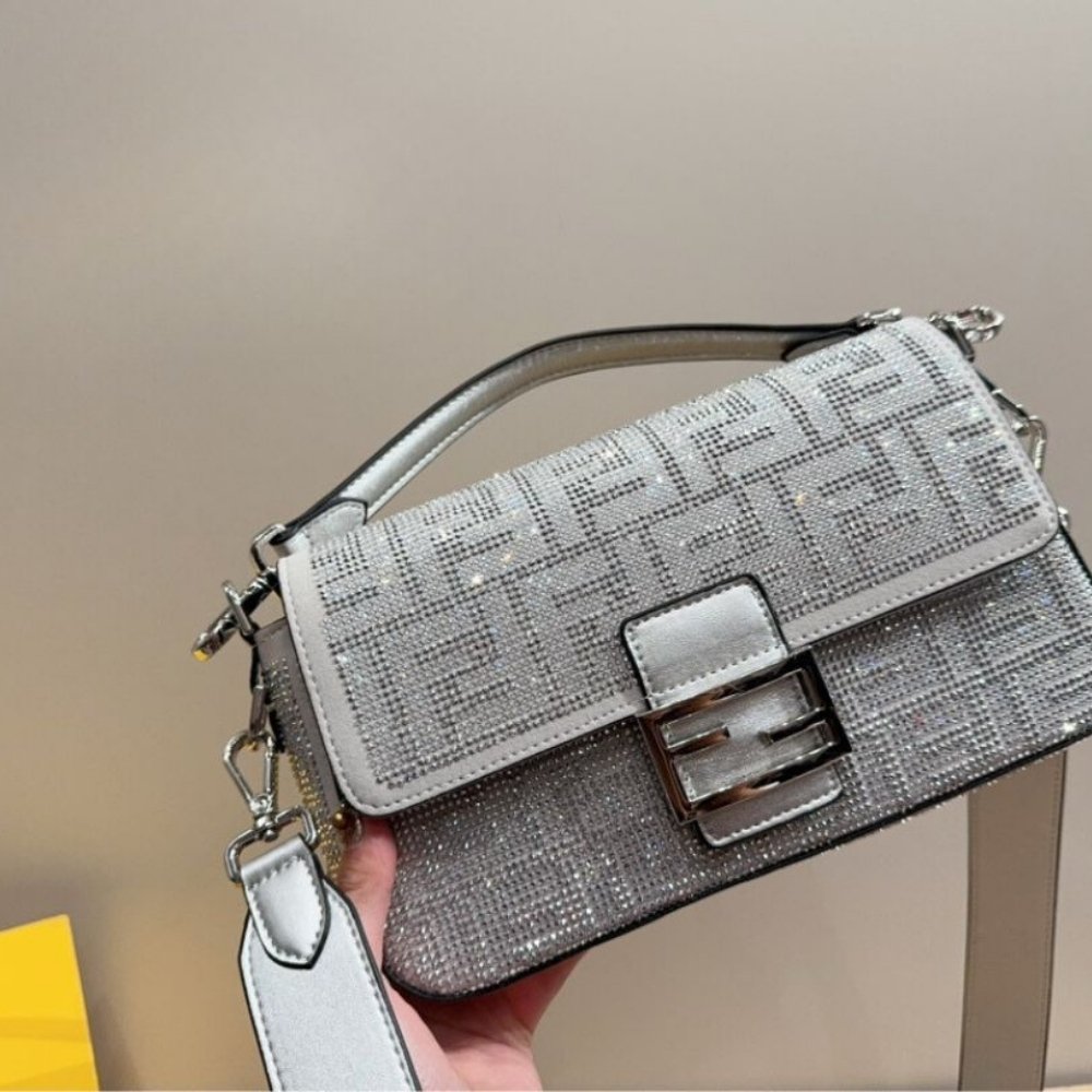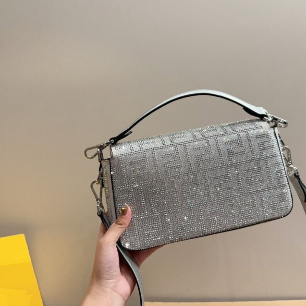 Replica 1:1 – Fendi Baguette Bag Silver Crystal 25cm