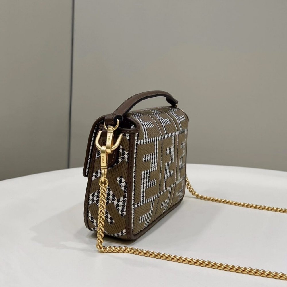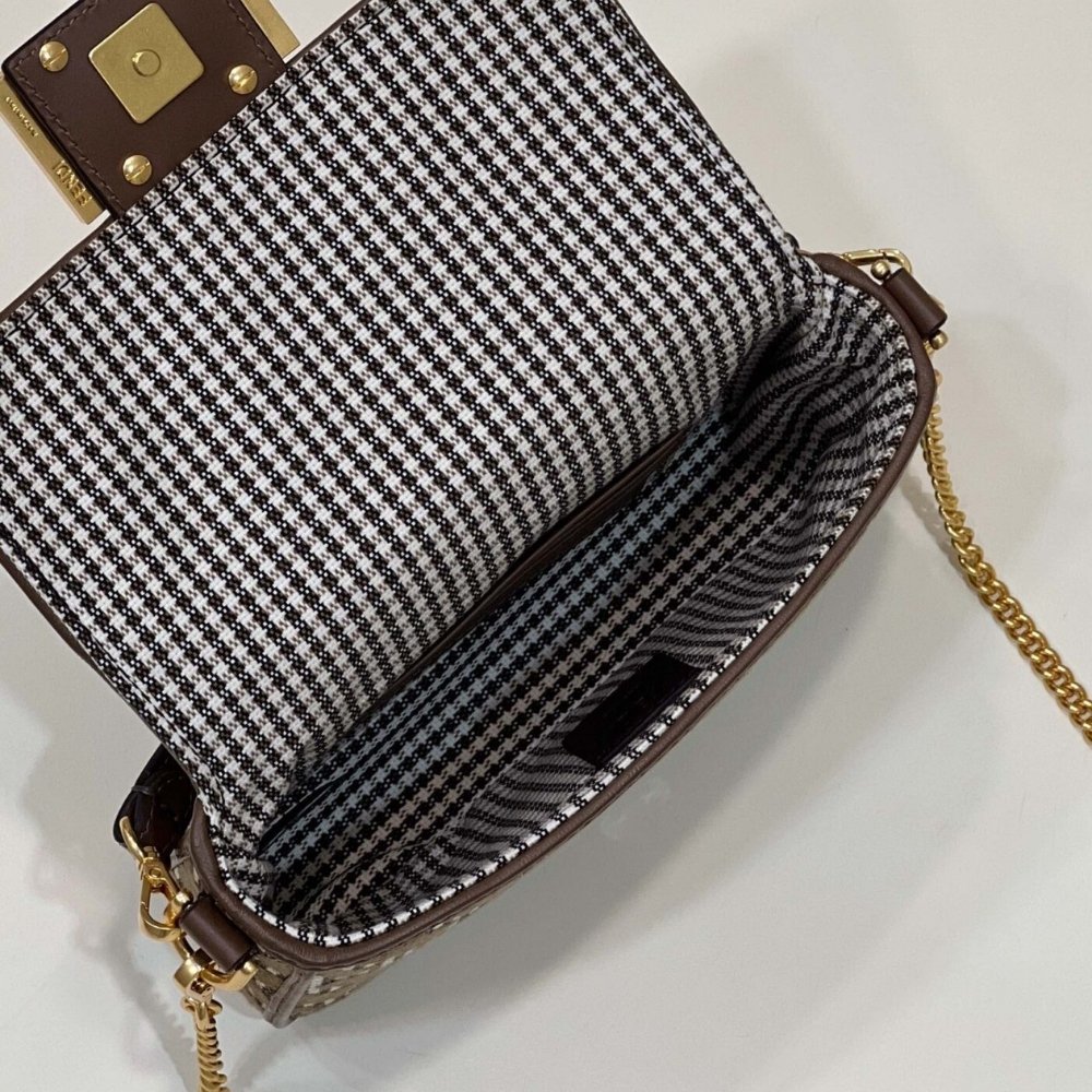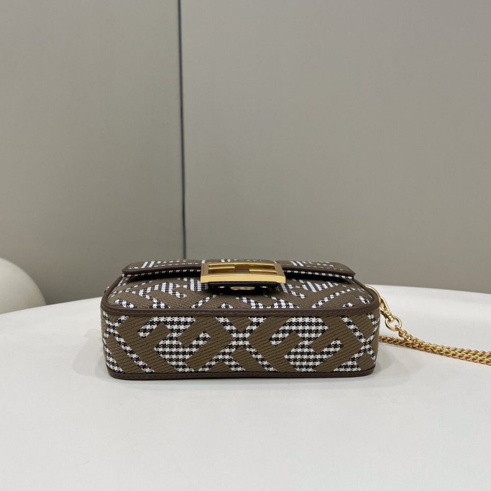 Fendi Baguette Bag With FF Embroidery Brown 19cm