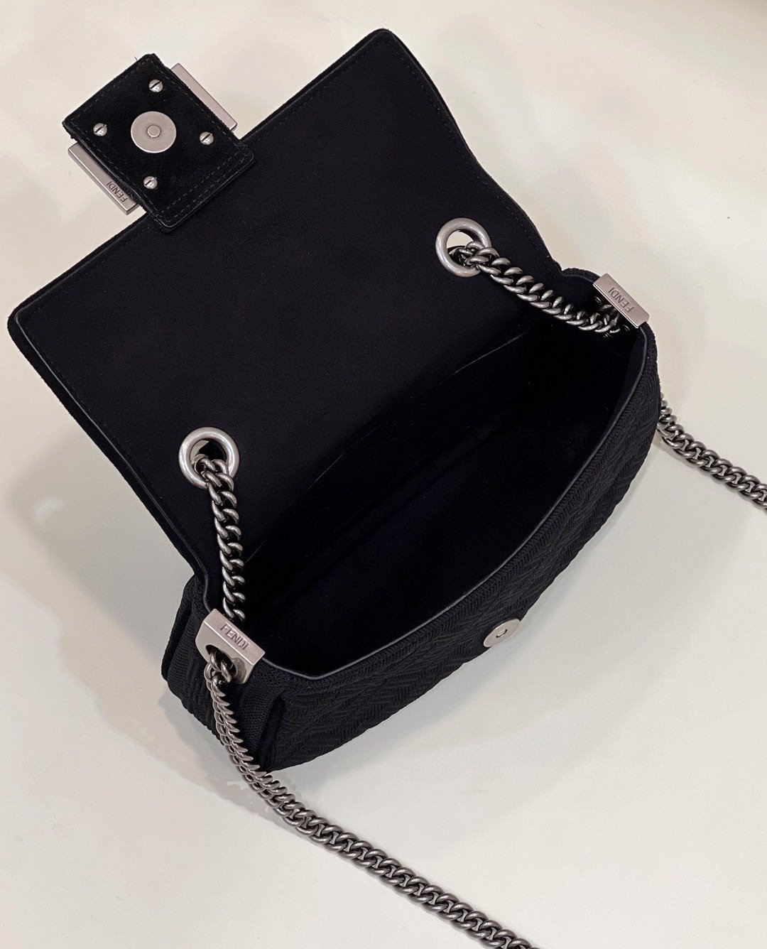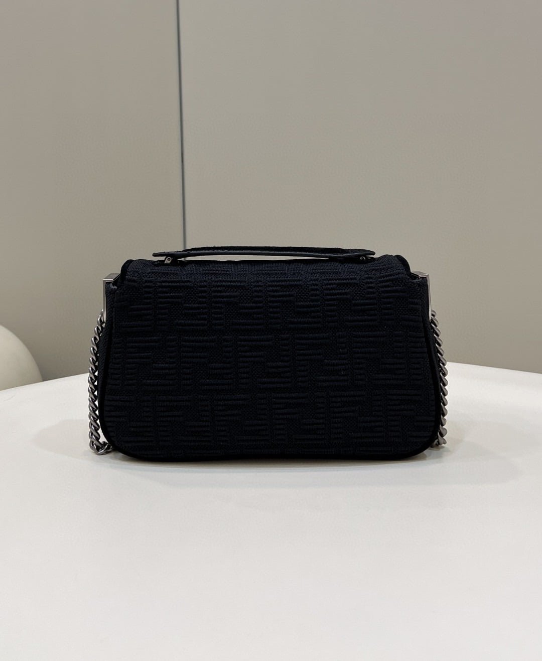 1:1 Replica Fendi Baguette Chain Midi Black FF Fabric Bag For Woman 14.5cm/6in