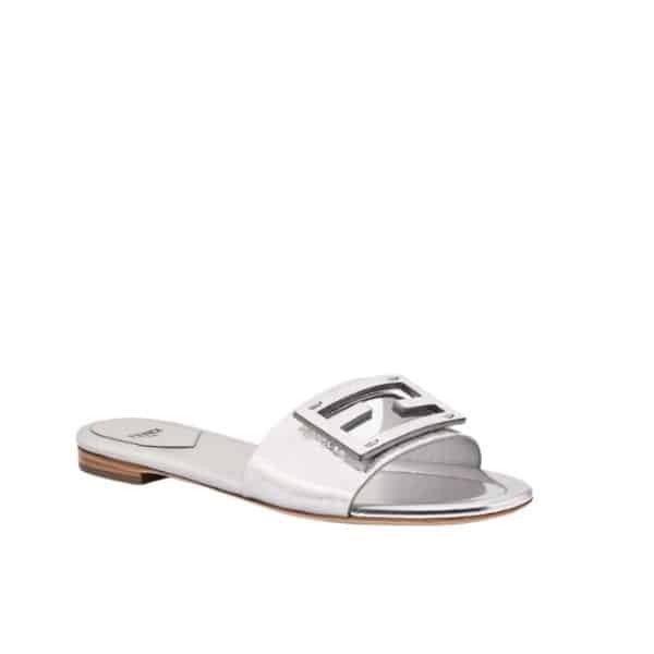 Fendi Baguette Silver Nappa Leather Slides 8R8136Ai16F0Ge7