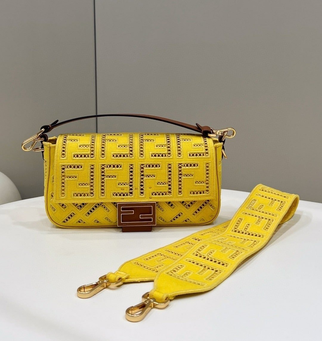 1:1 Replica Fendi Baguette Yellow with Embroidery Medium Bag For Woman 28cm/11in
