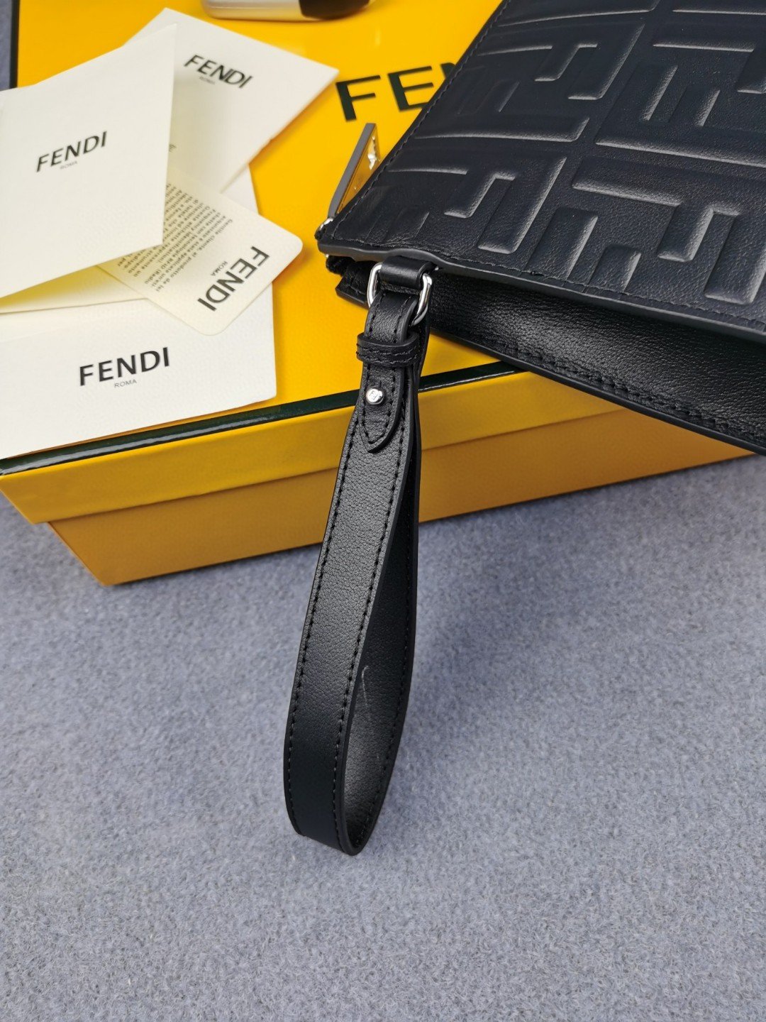 1:1 Replica Fendi Flat Pouch Black Nappa Pouch For Men 27cm/10.5in FF 7VA491A72VF0GXN