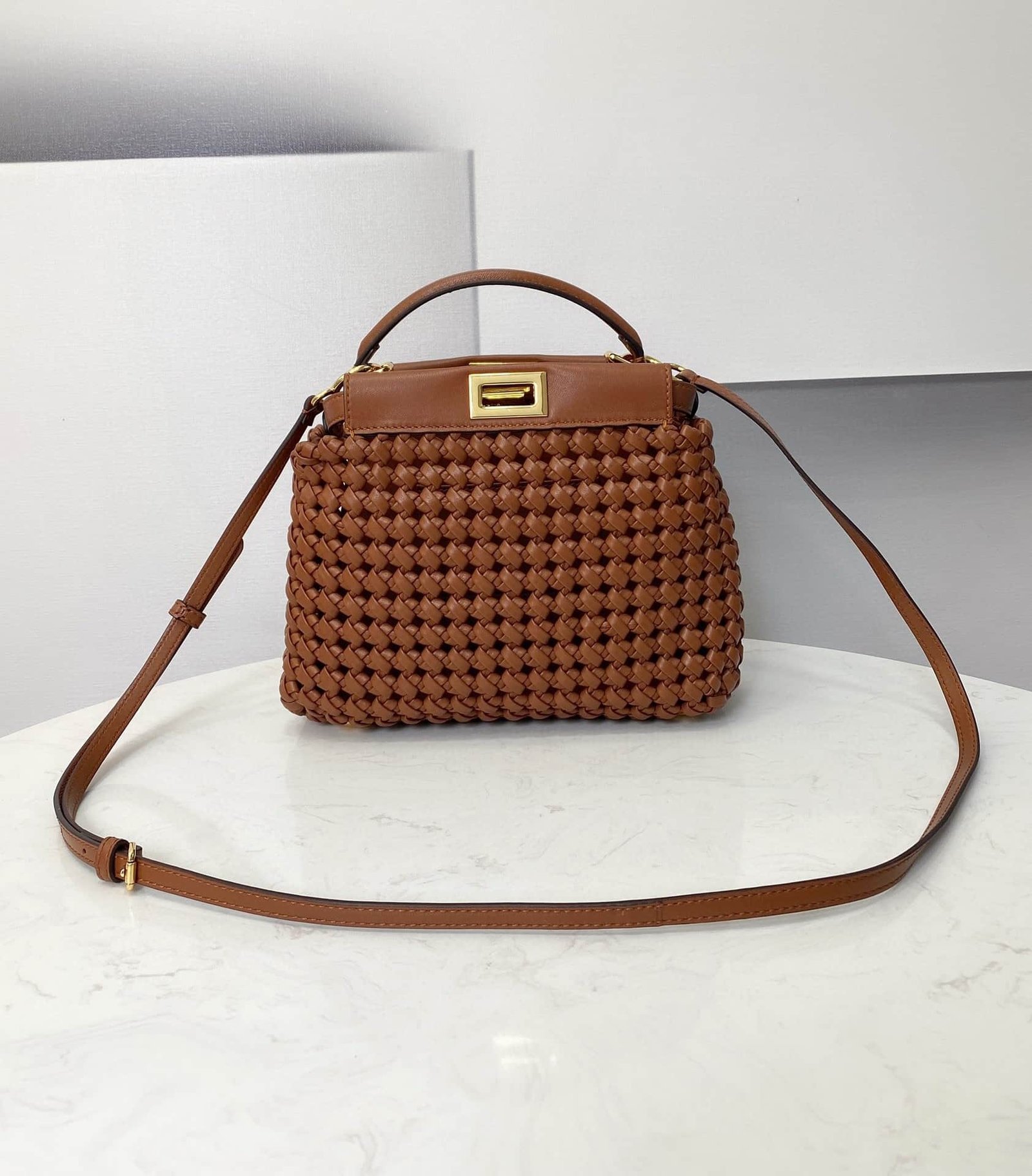 Be the first to review “1:1 Replica Fendi Peekaboo Mini Brown Braided Bag For Woman 18cm/7in” Cancel reply