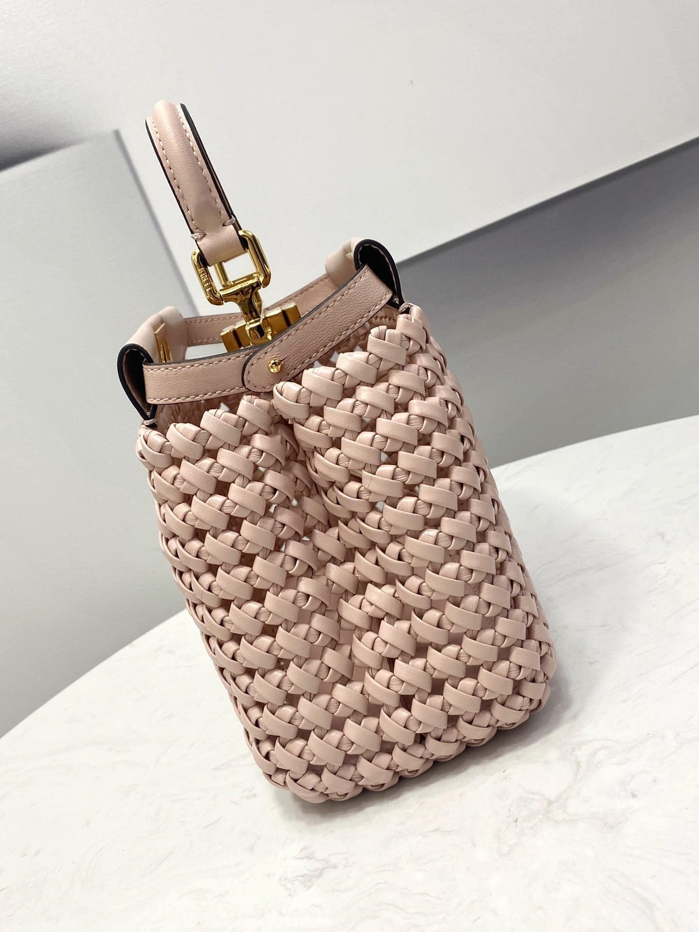 Be the first to review “1:1 Replica Fendi Peekaboo Mini Pale Pink Braided Bag For Woman 18cm/7in” Cancel reply