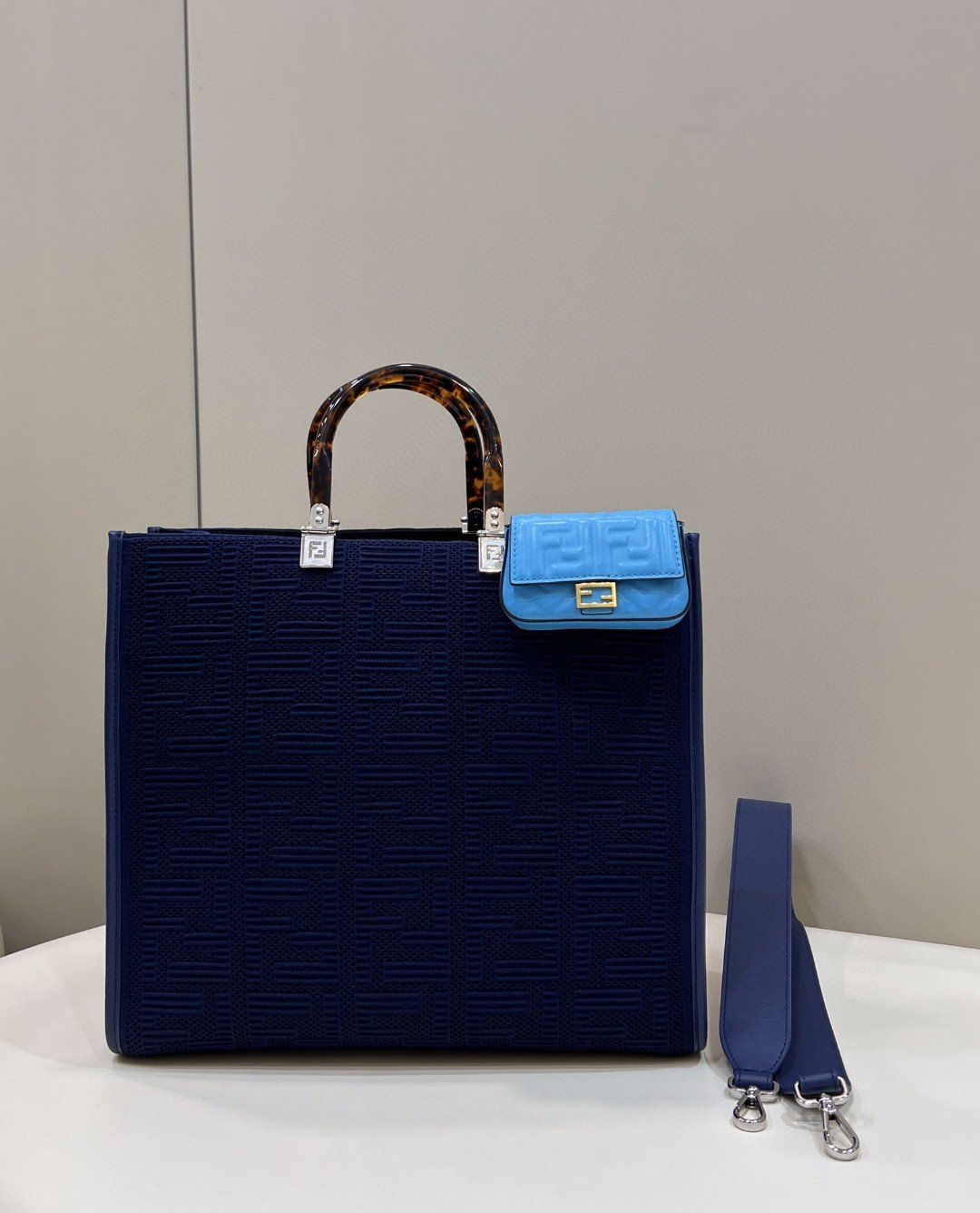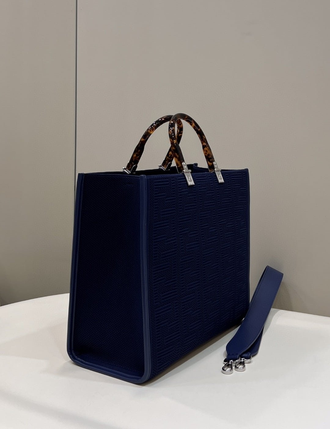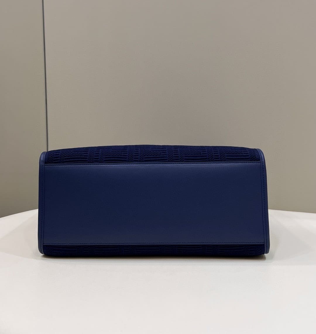1:1 Replica Fendi Sunshine Medium Navy Blue FF fabric shopper Bag For Woman 31cm/12in