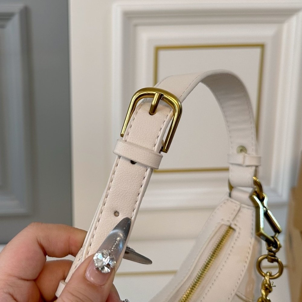 - Shiny gold-toned hardware