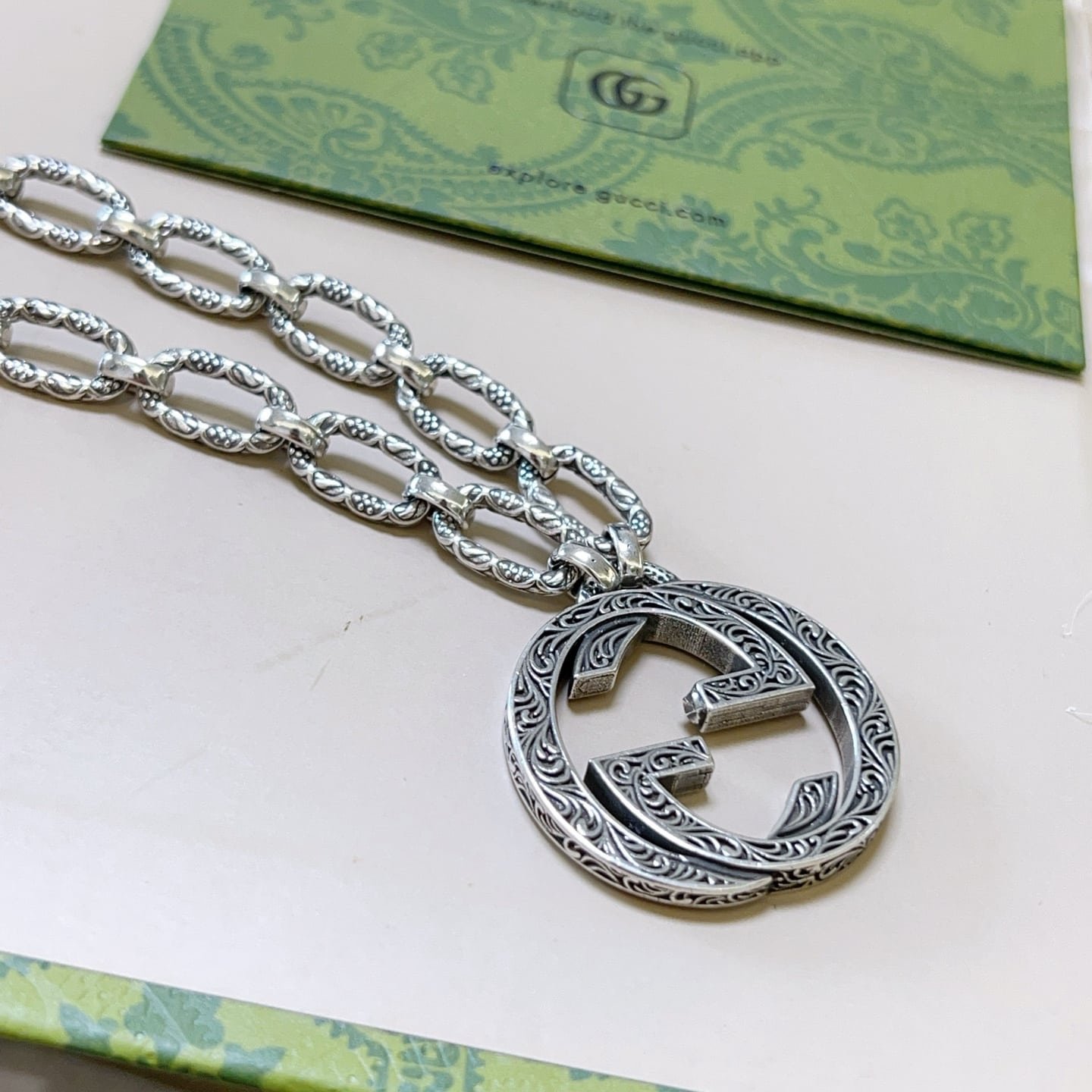 Gucci Arabesque Interlocking G Chain Necklace Sterling Silver
